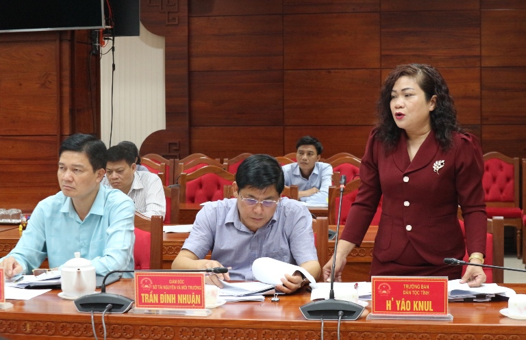 | Trưởng ban Dân tộc tỉnh H'Yâo Knul tham gia ý kiến vào dự thảo nghị quyết |