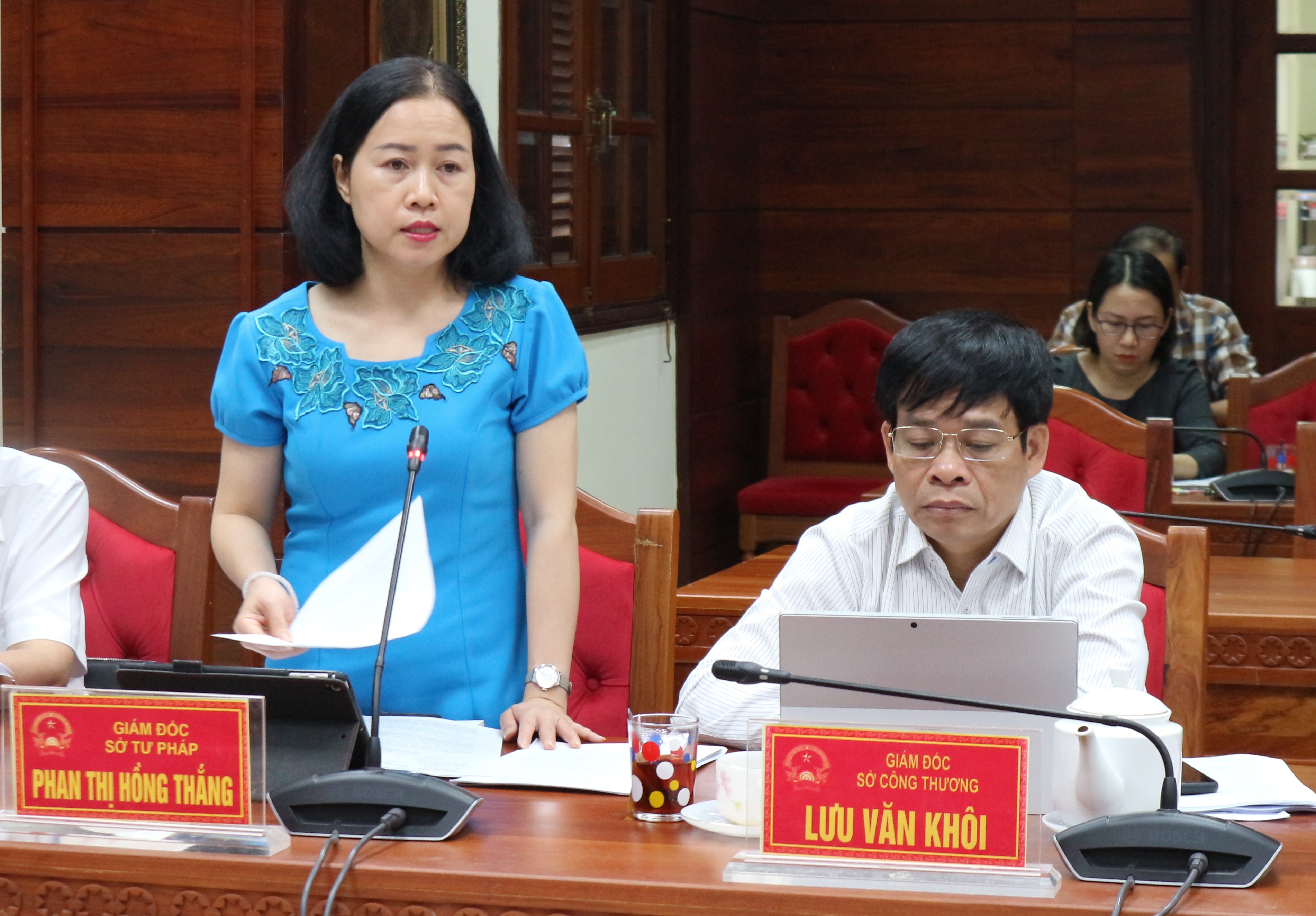 | Giám đốc Sở Tư pháp Phan Thị Hồng Thắng tham gia ý kiến |