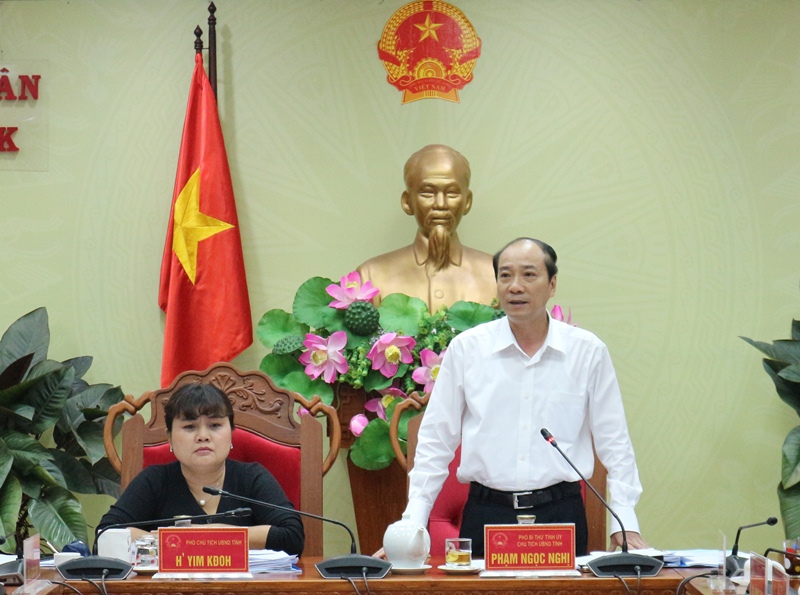| Chủ tịch UBND tỉnh Phạm Ngọc Nghị kết luận cuộc họp |
