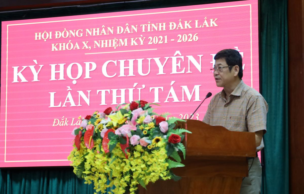 | Giám đốc Sở Nội vụ Bạch Văn Mạnh trình bày dự thảo Nghị quyết tại kỳ họp |