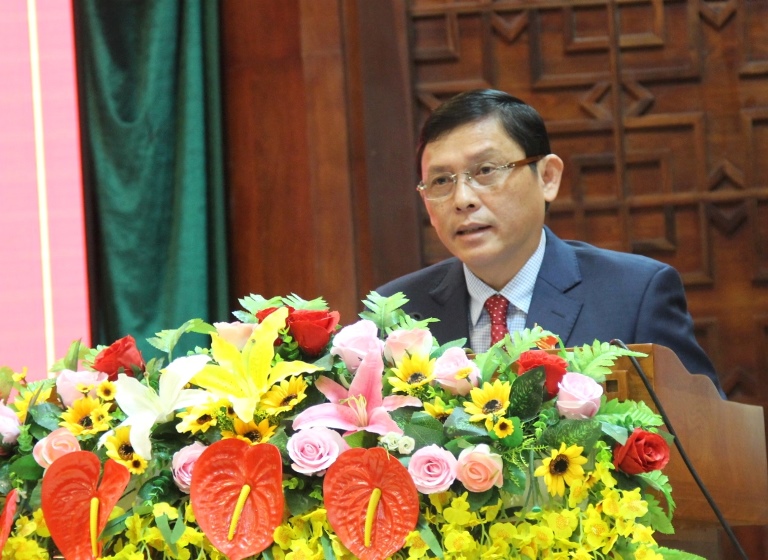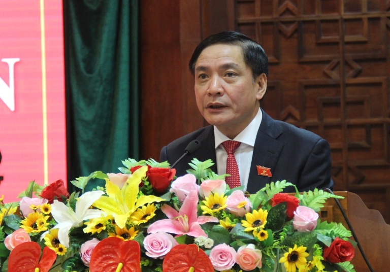 | Đồng chí Bùi Văn Cường – Ủy viên Trung ương Đảng, Bí thư Tỉnh ủy phát biểu tại Kỳ họp |
