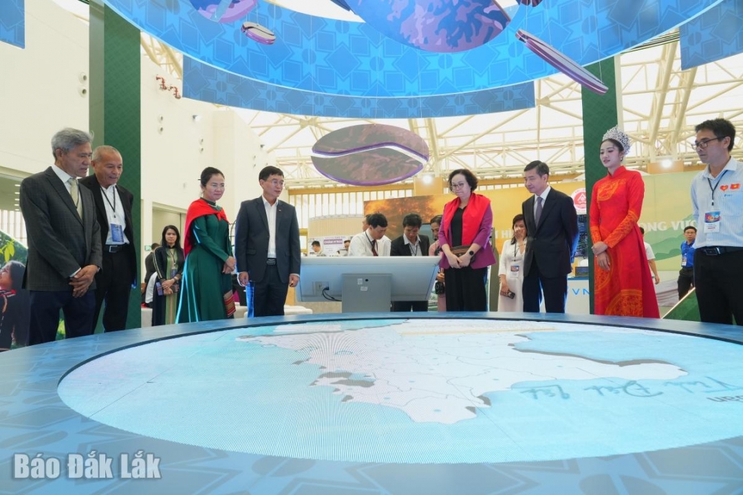 Không gian trải nghiệm công nghệ số, với sa bàn LED tương tác về bản đồ hành chính mới, khu vực trải nghiệm thực tế ảo 360 độ các điểm đến tiêu biểu như Thác Dray Nur, Vườn Quốc gia Chư Yang Sin, Gành Đá Đĩa…, cùng quầy chụp ảnh 3D và dữ liệu số hóa hiện vật.