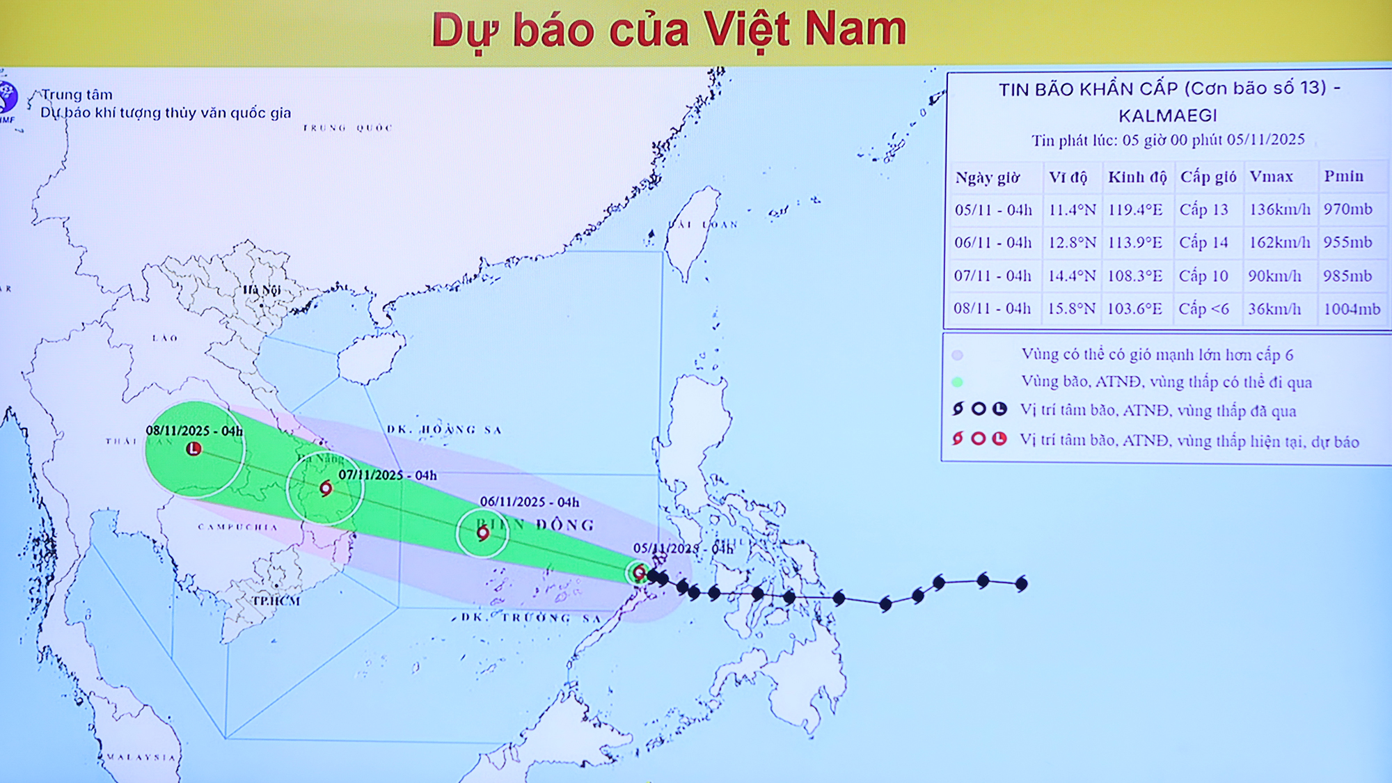 Thông tin tại Hội nghị, Thứ trưởng Bộ Nông nghiệp và Môi trường Nguyễn Hoàng Hiệp cho biết: Cơn bão số 13 (Kalmaegi) có nhiều đặc điểm tương tự như những cơn bão đã từng gây thiệt hai nghiêm trọng trước đây như Damrey năm 2017, Molave 2020. Đây là cơn bão mạnh, có tốc độ di chuyển nhanh, gây nguy cơ tác động trực tiếp và nghiêm trọng đến khu vực ven biển và đất liền. Dự kiến, bão sẽ đổ bộ lên đất liền vào khoảng 19h, tối ngày 06/11, tại khu vực tỉnh Gia Lai (thành phố Quy Nhơn cũ).