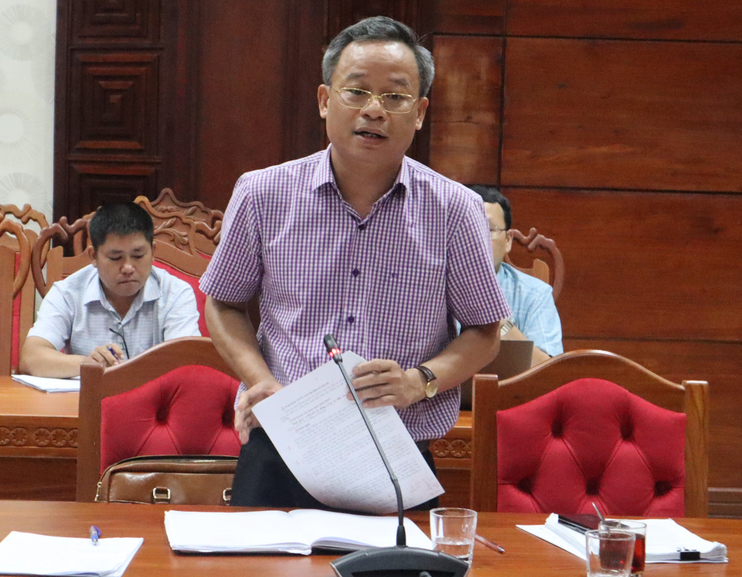 | Phó Giám đốc phụ trách Ban Quản lý dự án đầu tư xây dựng công trình giao thông và nông nghiệp phát triển nông thôn tỉnh Phan Xuân Bách báo cáo tình hình thực hiện Dự án thành phần 3. |