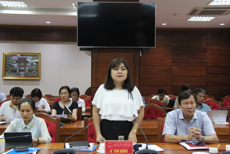| Phó Chủ tịch UBND tỉnh H’Yim Kđoh tham gia ý kiến |