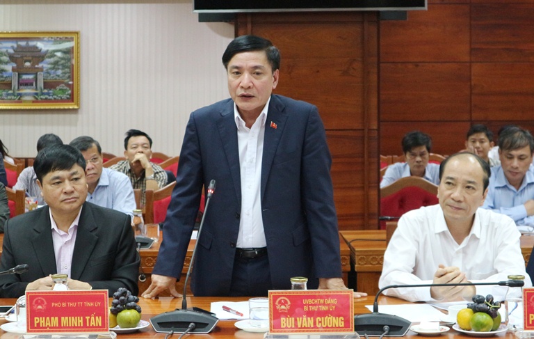 | Bí thư Tỉnh uỷ Bùi Văn Cường phát biểu tại buổi làm việc |