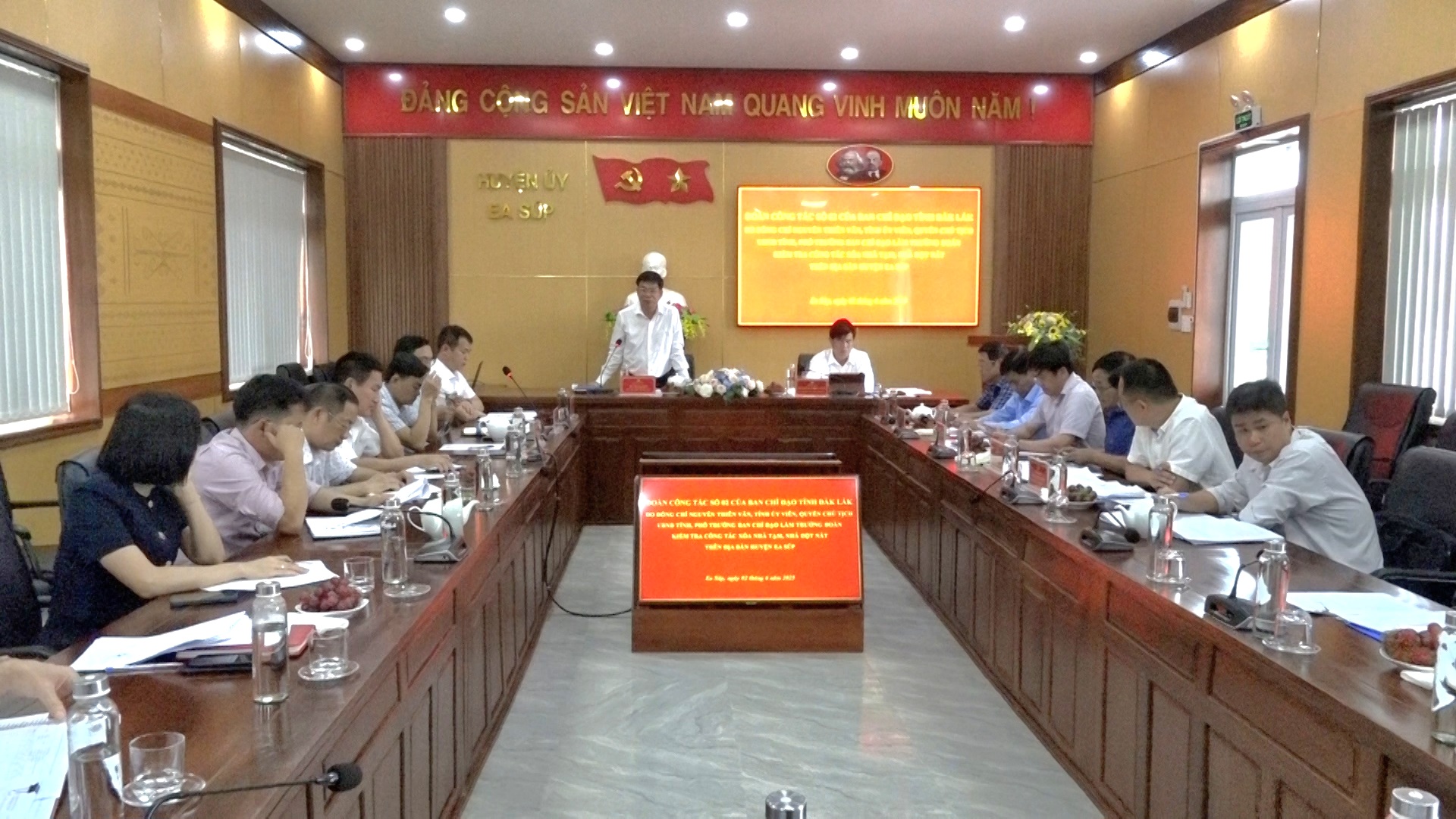 Tại buổi làm việc, đại diện Ban Chỉ đạo xóa nhà tạm, nhà dột nát huyện Ea Súp đã báo cáo với đoàn công tác kết quả triển khai thực hiện chương trình. Theo đó, để thực hiện chương trình xóa nhà tạm, nhà dột nát trên địa bàn huyện Ea Súp đạt hiệu quả, huyện Ea Súp đã thành lập Ban chỉ đạo, ban hành quy chế tổ chức và hoạt động, đồng thời triển khai các phong trào thi đua và đẩy mạnh công tác tuyên truyền bằng nhiều hình thức…