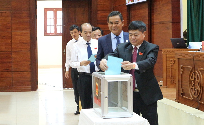 | Các đại biểu bỏ phiếu bầu nhân sự đối với chức danh Ủy viên UBND tỉnh |