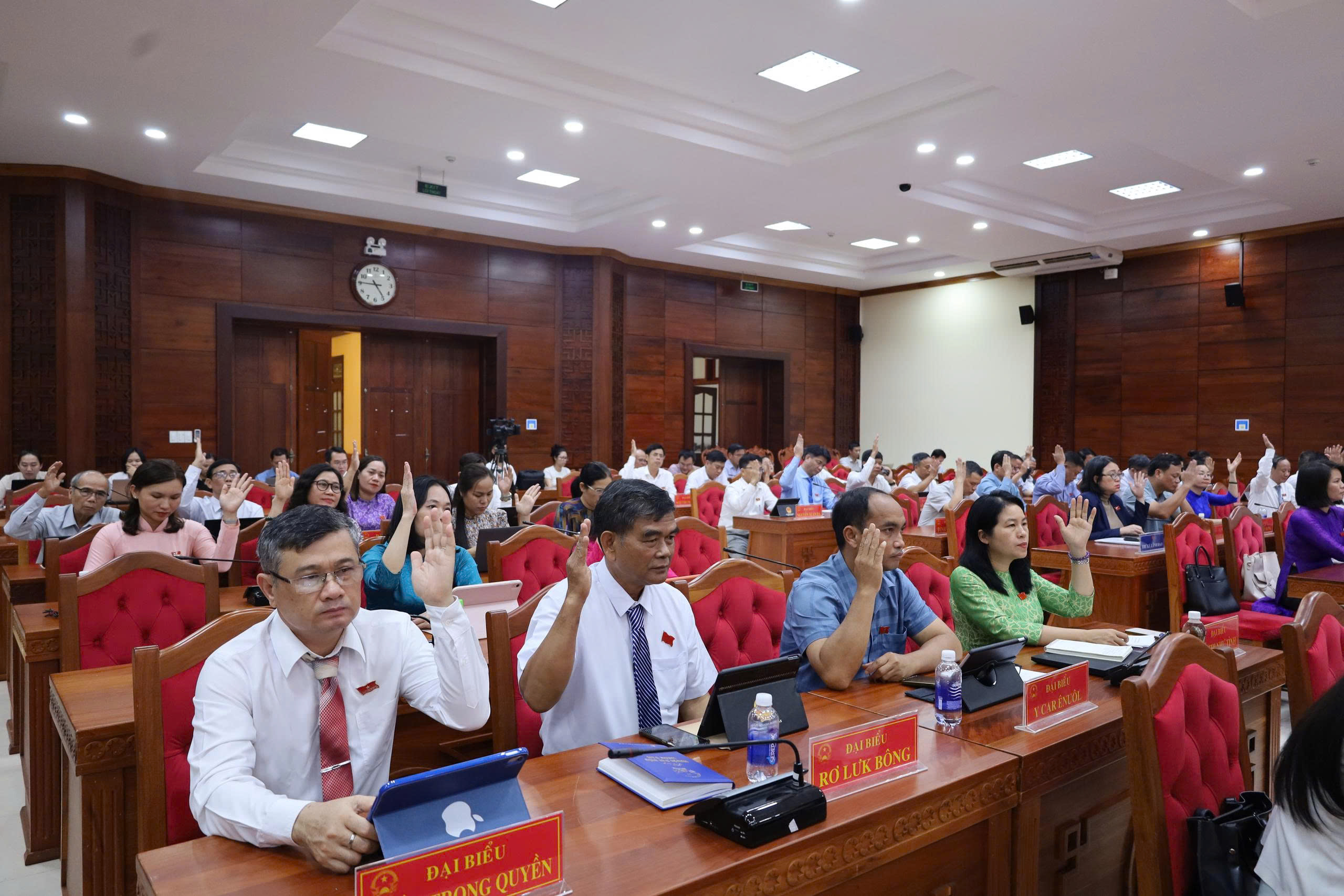 Đại biểu biểu quyết thông qua dự thảo các nghị quyết tại Kỳ họp chuyên đề.