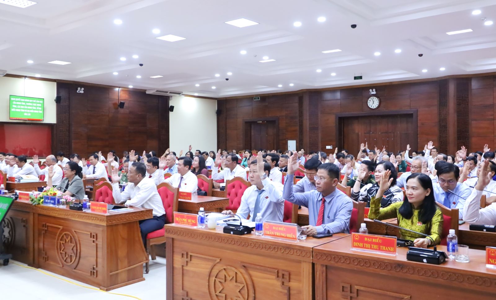 Đại biểu biểu quyết thông qua các nghị quyết tại kỳ họp.