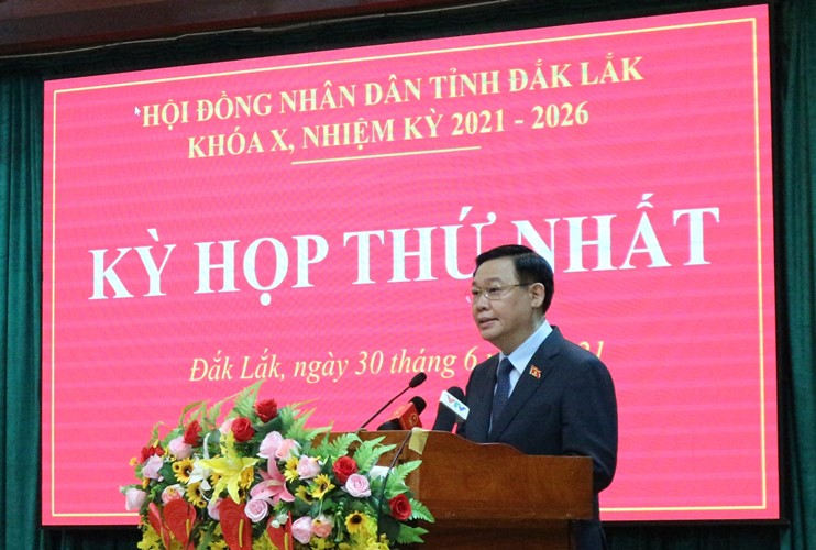Phát biểu chỉ đạo kỳ họp, Ủy viên Bộ Chính trị, Chủ tịch Quốc hội Vương Đình Huệ nhấn mạnh: Nhiệm kỳ 2021 - 2026, HĐND tỉnh Đắk Lắk khóa X cần tiếp tục đổi mới mạnh mẽ, nâng cao chất lượng và hiệu quả hơn nữa; trong đó chú trọng thực hiện các khâu đột phá chiến lược, cơ cấu lại nền kinh tế để Đắk Lắk phát huy được những lợi thế, tiềm năng phát triển nhanh, bền vững, thực sự trở thành trung tâm của vùng Tây Nguyên. Đồng thời, tích cực, chủ động, sáng tạo, thường xuyên đổi mới nội dung, phương thức hoạt động, lề lối làm việc; chủ động tham gia có hiệu quả các chương trình giám sát của Quốc hội tại địa phương; tham gia tích cực vào chương trình xây dựng pháp luật, các dự án luật, văn bản quy phạm pháp luật của Trung ương và địa phương theo chức năng, thẩm quyền được giao; quan tâm kiện toàn tổ chức bộ máy, chú trọng công tác bồi dưỡng hoạt động của đại biểu HĐND; nâng cao chất lượng bộ máy tham mưu, giúp việc của Thường trực HĐND, các Ban, các Tổ đại biểu và đại biểu HĐND tỉnh...