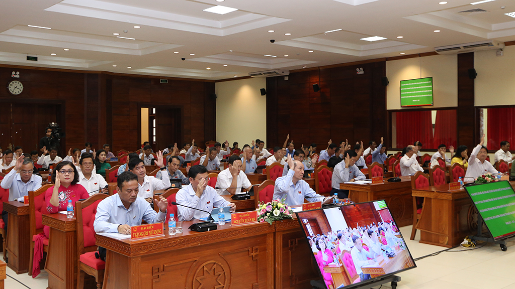 | Đại biểu biểu quyết thông qua Nghị quyết tại kỳ họp |