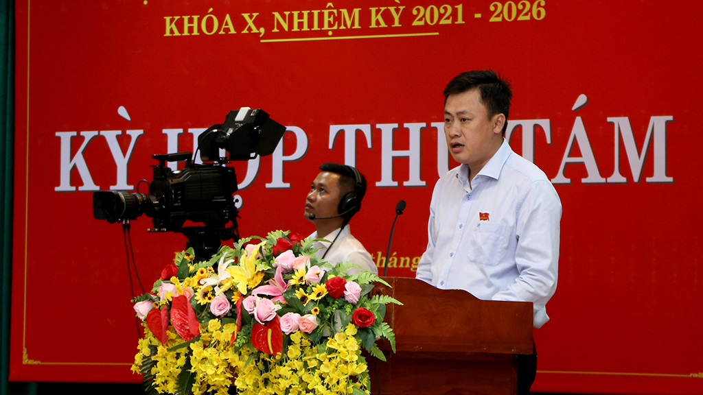 | Trưởng Ban Văn hóa – Xã hội HĐND tỉnh Nguyễn Văn Toàn trình bày dự thảo Nghị quyết tại Kỳ họp |