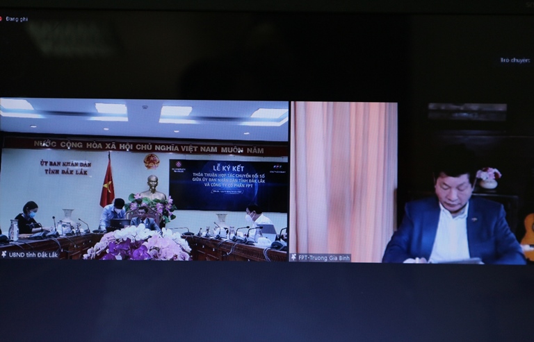 Chiều 11/3, UBND Đắk Lắk và Công ty Cổ phần FPT tỉnh đã tổ chức ký kết Chương trình thỏa thuận hợp tác chuyển đổi số tỉnh Đắk Lắk giai đoạn 2022 - 2025. Tham dự buổi lễ, về phía tỉnh Đắk Lắk có ông Nguyễn Tuấn Hà, Ủy viên Ban Thường vụ Tỉnh ủy, Phó Chủ tịch Thường trực UBND tỉnh, Trưởng Ban Chỉ đạo Chuyển đổi số tỉnh cùng lãnh đạo một số sở, ngành. Về phía Công ty Cổ phần FPT có ông Trương Gia Bình, Chủ tịch Hội đồng quản trị.