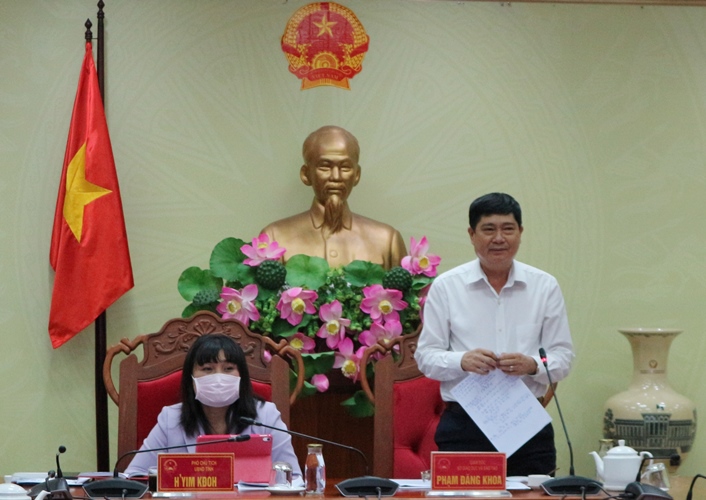| Phó Chủ tịch UBND tỉnh H'Yim Kđoh chủ trì cùng đại diện lãnh đạo các sở, ngành tham dự tại điểm cầu tỉnh Đắk Lắk |