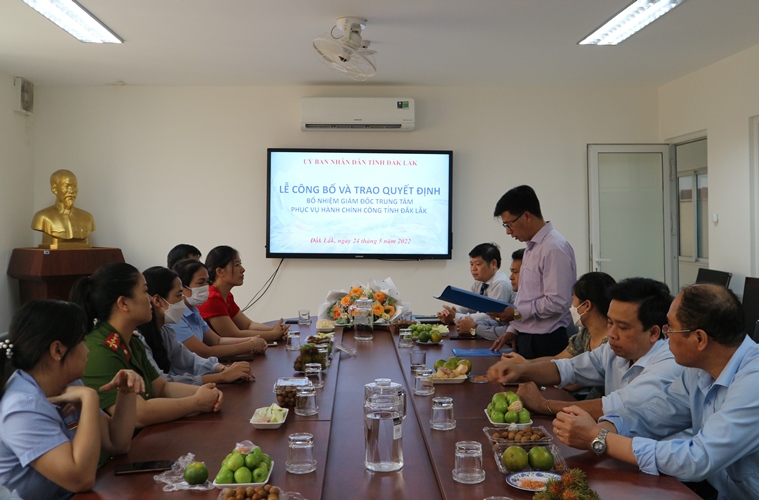 Buổi lễ đã trao Quyết định bổ nhiệm ông Đoàn Ngọc Thượng, Phó Chánh Văn phòng UBND tỉnh kiêm nhiệm chức vụ Giám đốc Trung tâm Phục vụ hành chính công tỉnh Đắk Lắk kể từ ngày 06/5/2022 (Quyết định 1051/QĐ-UBND ngày 06/5/2022 về việc bổ nhiệm Giám đốc Trung tâm Phục vụ hành chính công tỉnh Đắk Lắk).
