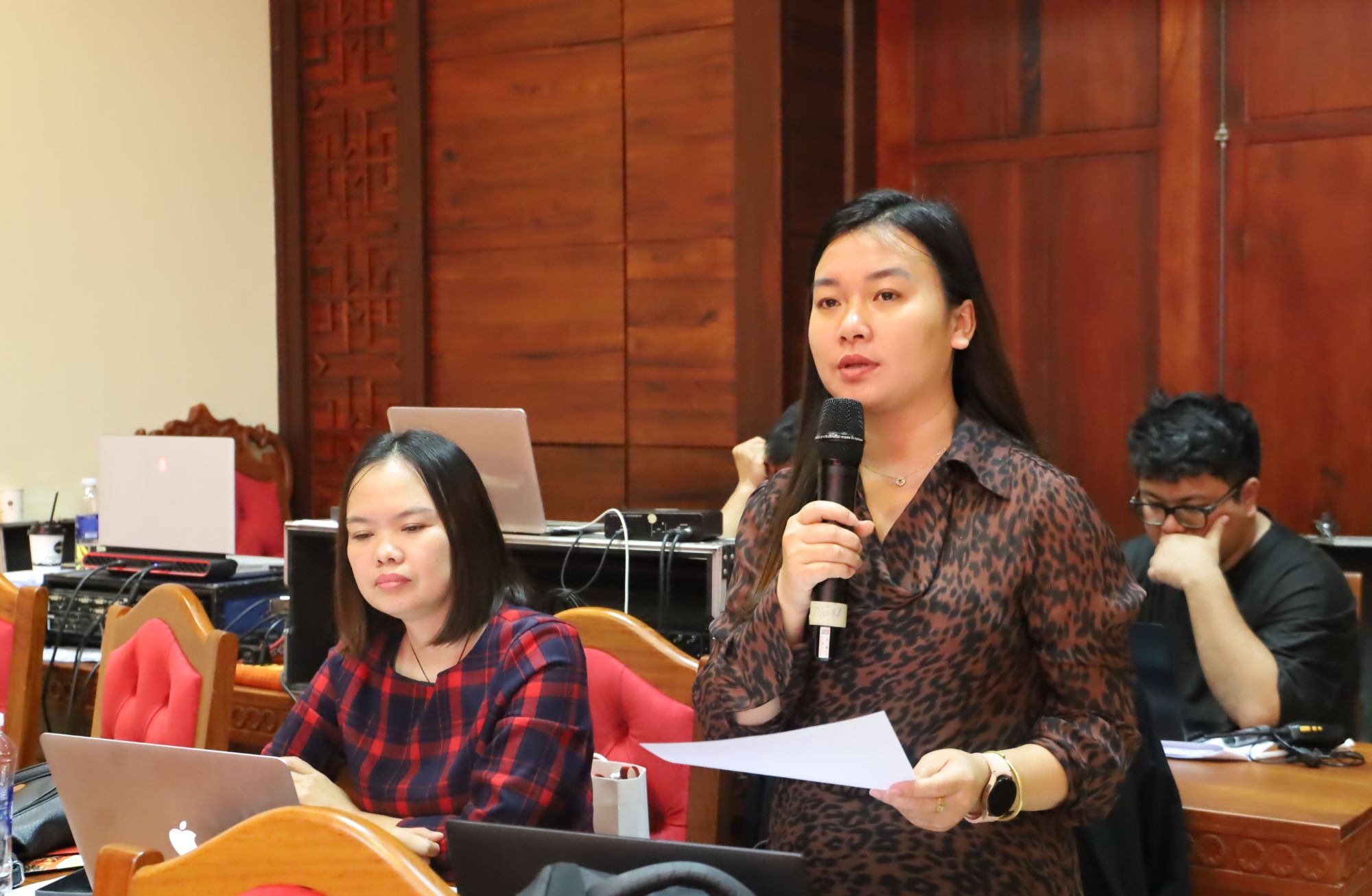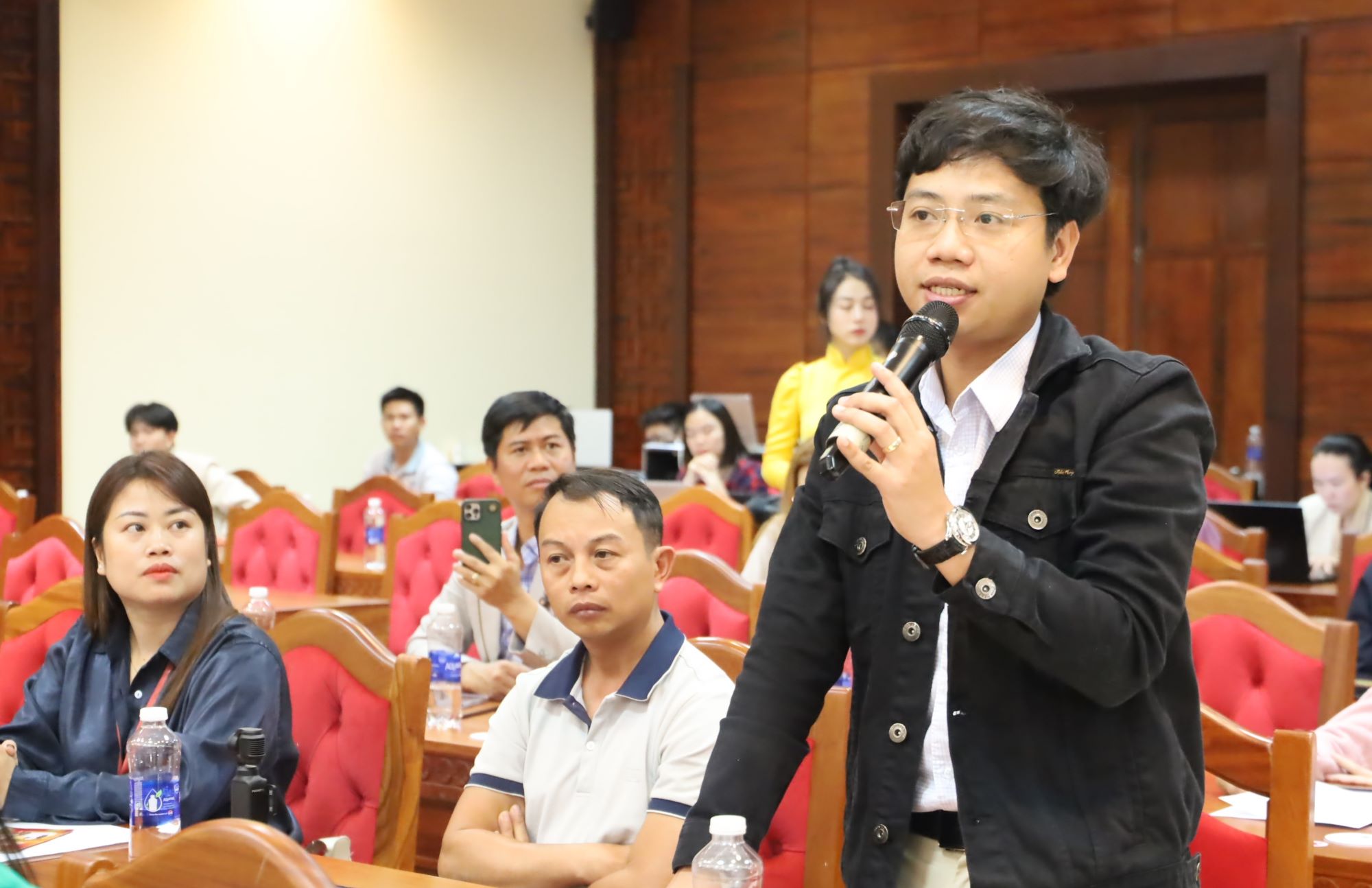 Phóng viên Bảo Trung – Báo Lao động đặt câu hỏi tại buổi họp báo. |