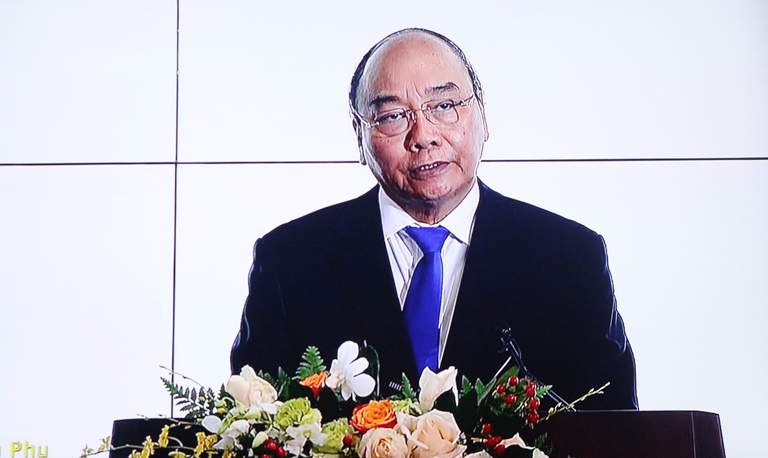 | Thủ tướng Chính phủ Nguyễn Xuân Phúc phát biểu tại buổi lễ (Ảnh: chụp từ màn hình) |