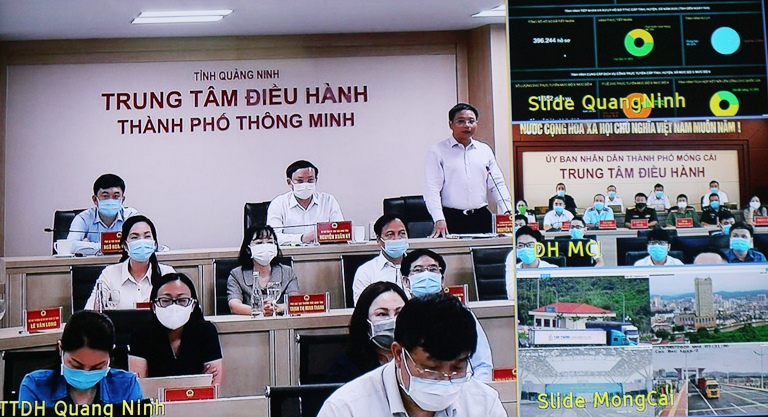 | Điểm cầu tỉnh Quảng Ninh báo cáo tại buổi lễ khai trương (Ảnh: chụp từ màn hình) |