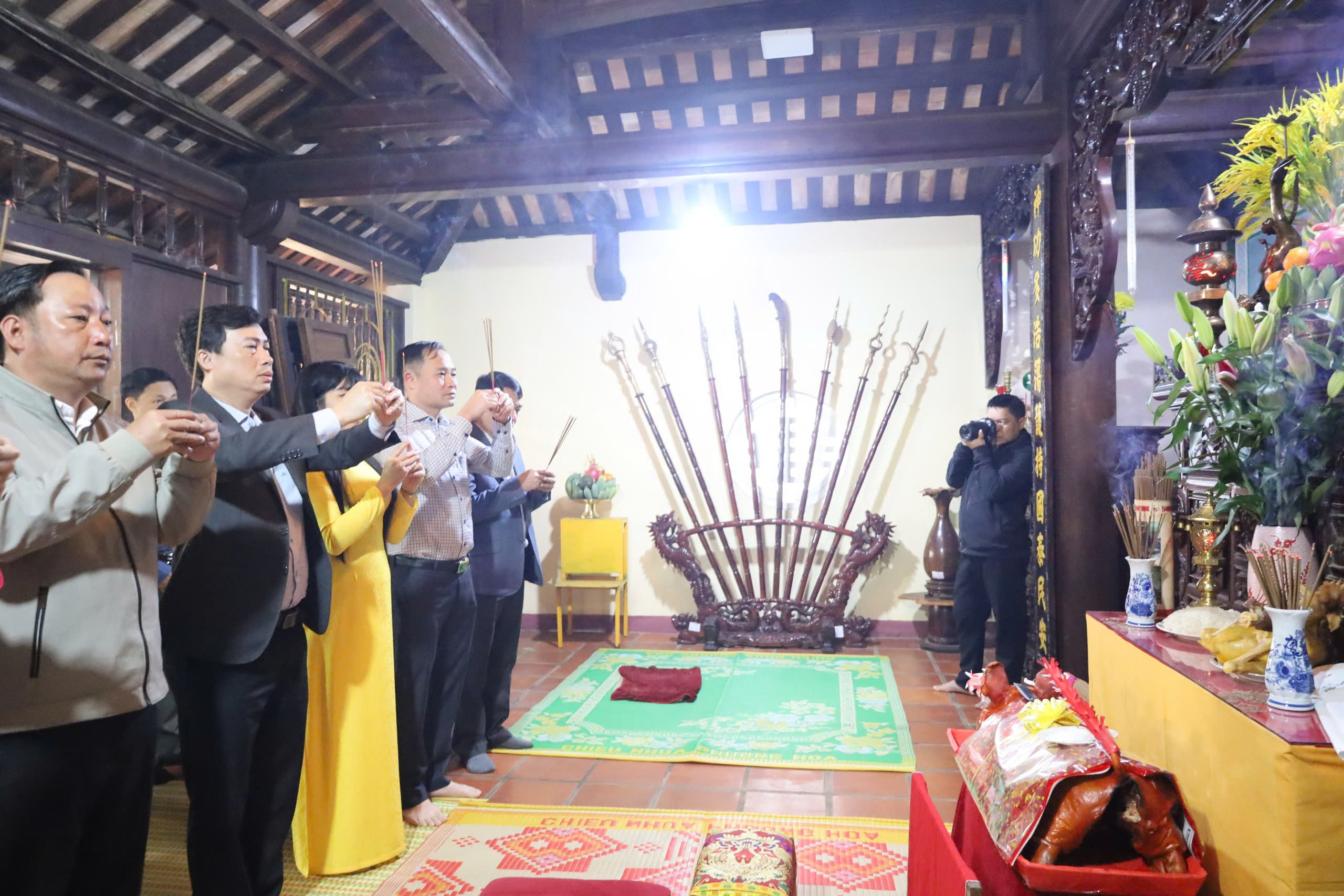 | Đại biểu dâng hương tại buổi Lễ Tế Xuân Ất Tỵ tại Di tích lịch sử Quốc gia Đình Lạc Giao |