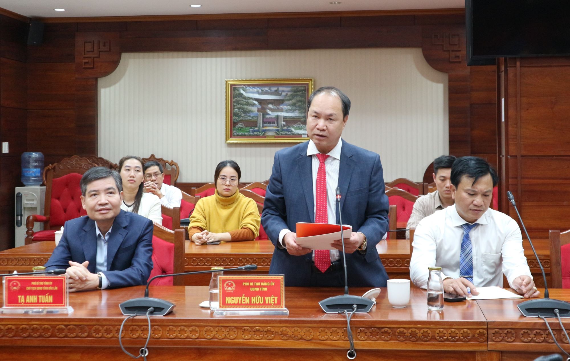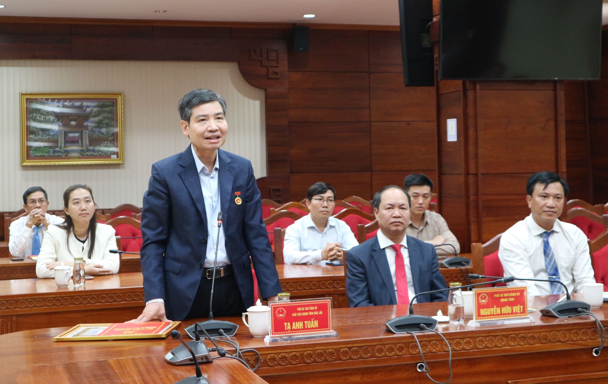 Phát biểu tại buổi lễ, đồng chí Hồ Thị Nguyên Thảo - Ủy viên Ban Thường vụ Tỉnh ủy, Phó Chủ tịch Thường trực UBND tỉnh nhấn mạnh: Đồng chí Tạ Anh Tuấn - Phó Bí thư Tỉnh ủy, Bí thư Đảng ủy, Chủ tịch UBND tỉnh đã trải qua nhiều cương vị công tác khác nhau, cá nhân đồng chí đã luôn phấn đấu, tu dưỡng, rèn luyện và tuyết đối trung thành với mục tiêu lý tưởng cách mạng của Đảng, chấp hành nghiêm chỉnh các cương lĩnh chính trị, Điều lệ Đảng Cộng sản Việt Nam; có đạo đức, lối sống lành mạnh, gắn bó mật thiết với quần chúng nhân dân, hoàn thành tốt nhiệm vụ của người đảng viên. Việc trao tặng Huy hiệu 30 năm tuổi Đảng là sự ghi nhận của Đảng đối với quá trình cống hiến của đồng chí Tạ Anh Tuấn cho sự nghiệp cách mạng của Đảng. Đây không chỉ là vinh dự của cá nhân đồng chí mà còn là vinh dự của Đảng bộ UBND tỉnh. Phó Chủ tịch Thường trực UBND tỉnh đề nghị trong thời gian tới, bản thân đồng chí Tạ Anh Tuấn sẽ tiếp tục đóng góp tâm huyết, trí tuệ, công sức cho sự phát triển chung của tỉnh Đắk Lắk và lãnh đạo chỉ đạo, hoạt động của Đảng ủy UBND tỉnh đạt kết quả cao.