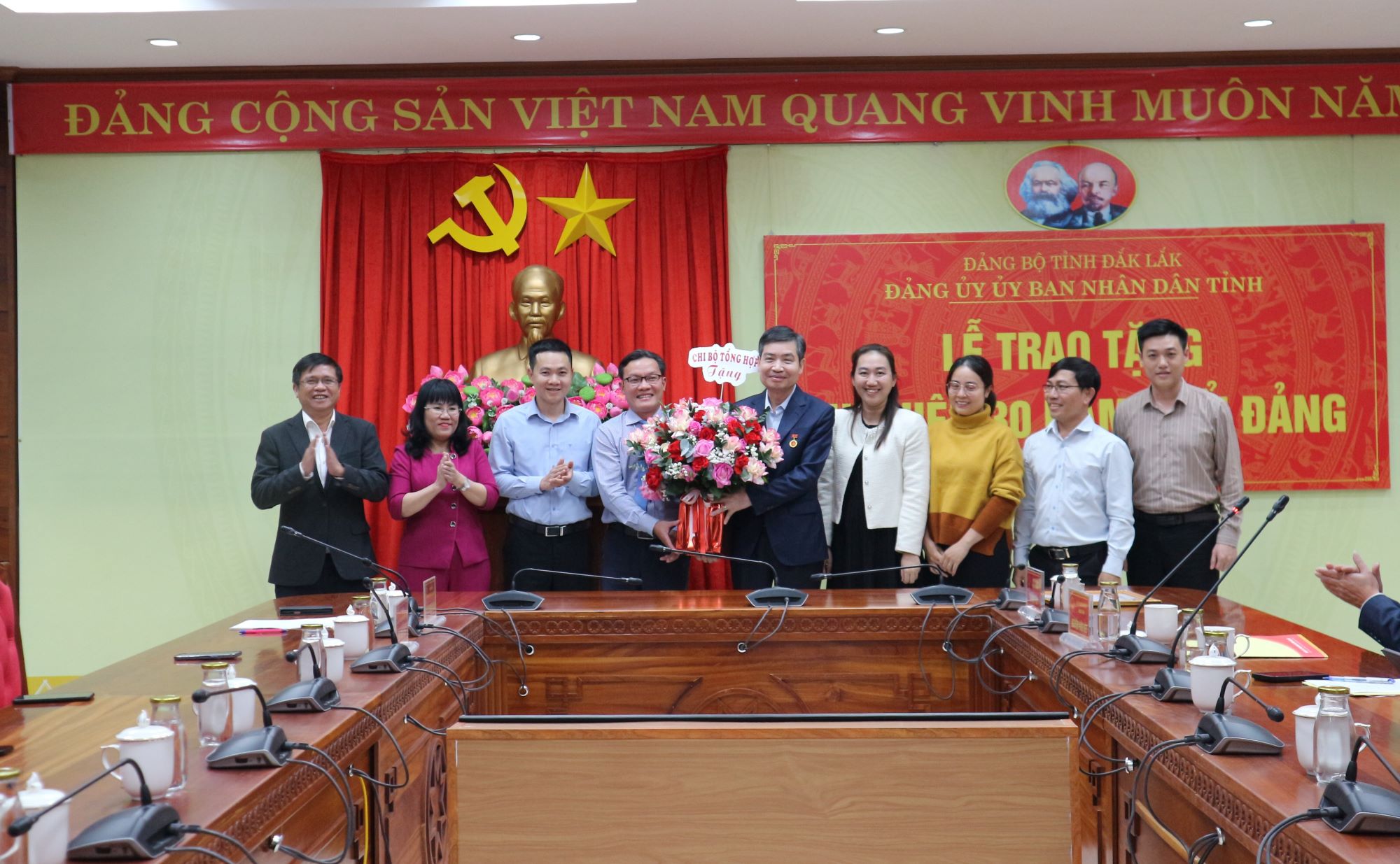 Lễ trao tặng Huy hiệu 30 năm tuổi Đảng cho Phó Bí thư Tỉnh ủy, Bí thư Đảng ủy, Chủ tịch UBND tỉnh Đắk Lắk Tạ Anh Tuấn