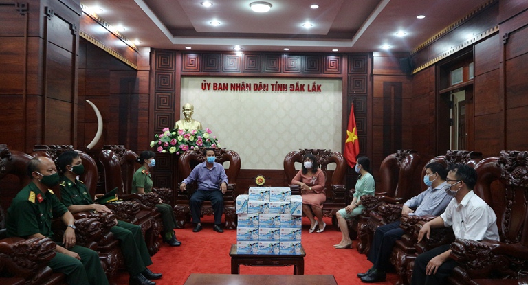 Chiều 07/8, Phó Chủ tịch UBND tỉnh, Phó Trưởng Ban Chỉ đạo phòng, chống dịch bệnh COVID-19 tỉnh H’Yim Kđoh đã đại diện Ban Chỉ đạo phòng, chống dịch bệnh COVID-19 tỉnh Đắk Lắk nhận 50.000 khẩu trang do Công ty Cổ phần DPV Đắk Lắk (số 48 Lý Tự Trọng, phường Tân An, thành phố Buôn Ma Thuột) và Công ty TNHH 2 thành viên lâm nghiệp Phước An (số 107 Lê Duẩn, thị trấn Phước An, huyện Krông Pắk) trao tặng.