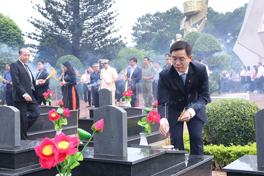 Tại lễ viếng, các đại biểu đã thành kính dâng hoa, dâng hương tưởng niệm, bày tỏ lòng biết ơn vô hạn và kính trọng sâu sắc đối với Chủ tịch Hồ Chí Minh; các Anh hùng liệt sĩ đã hy sinh vì sự nghiệp giải phóng dân tộc, bảo vệ Tổ quốc.