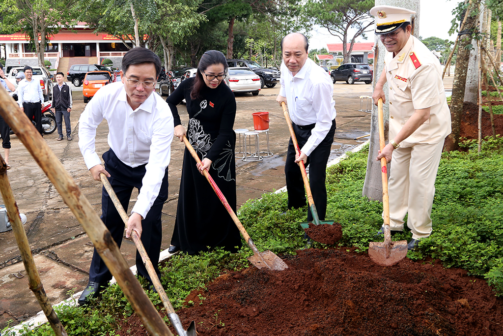 | Các đại biểu trồng cây lưu niệm, tạo cảnh quan trong khuôn viên Nghĩa trang Liệt sĩ tỉnh Đắk Lắk |