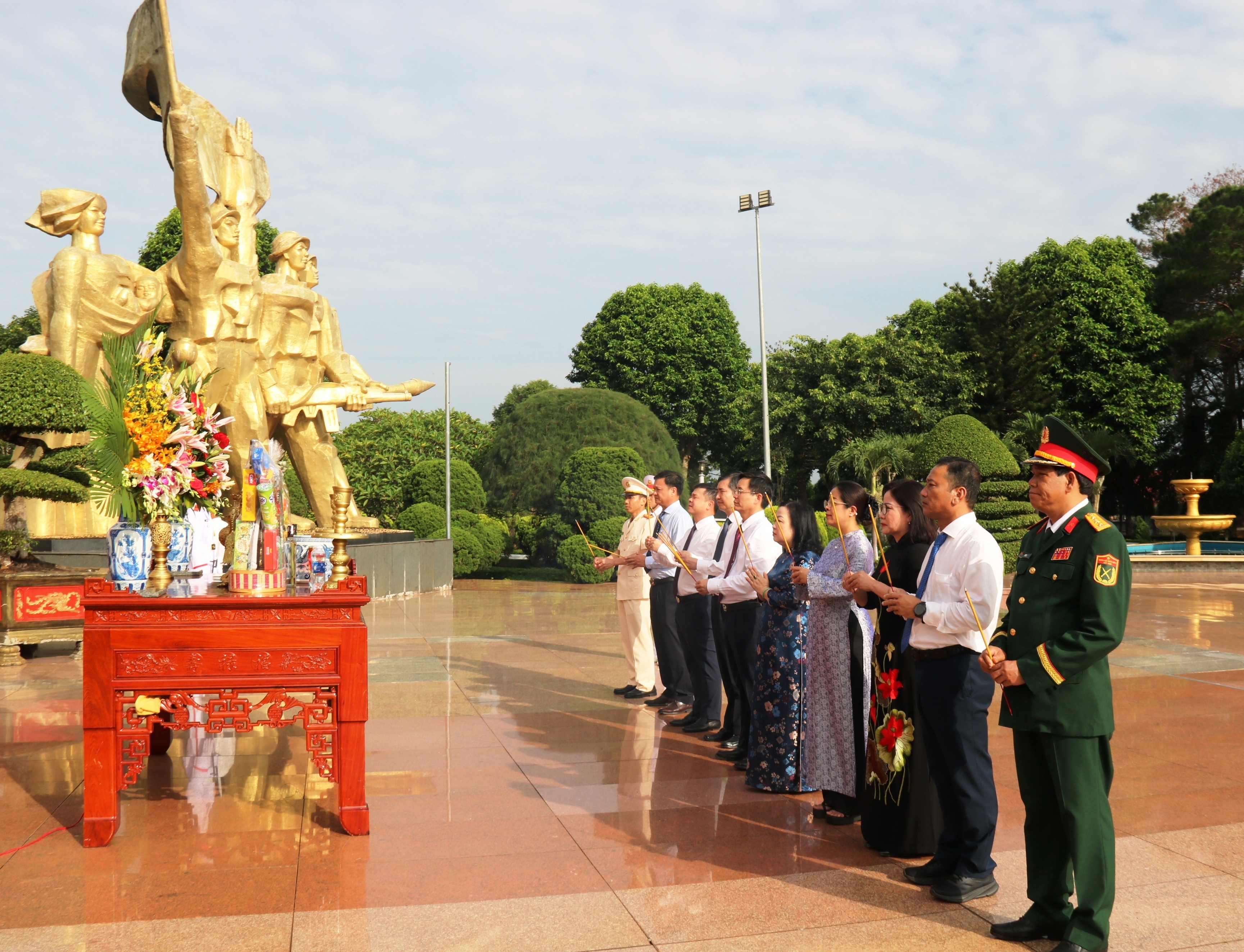 Trong không khí trang nghiêm, các đồng chí lãnh đạo tỉnh đã thành kính dâng hoa, dâng hương viếng Chủ tịch Hồ Chí Minh, Đại tướng Võ Nguyên Giáp và các Anh hùng liệt sĩ tại Đền thờ liệt sĩ tỉnh Đắk Lắk.