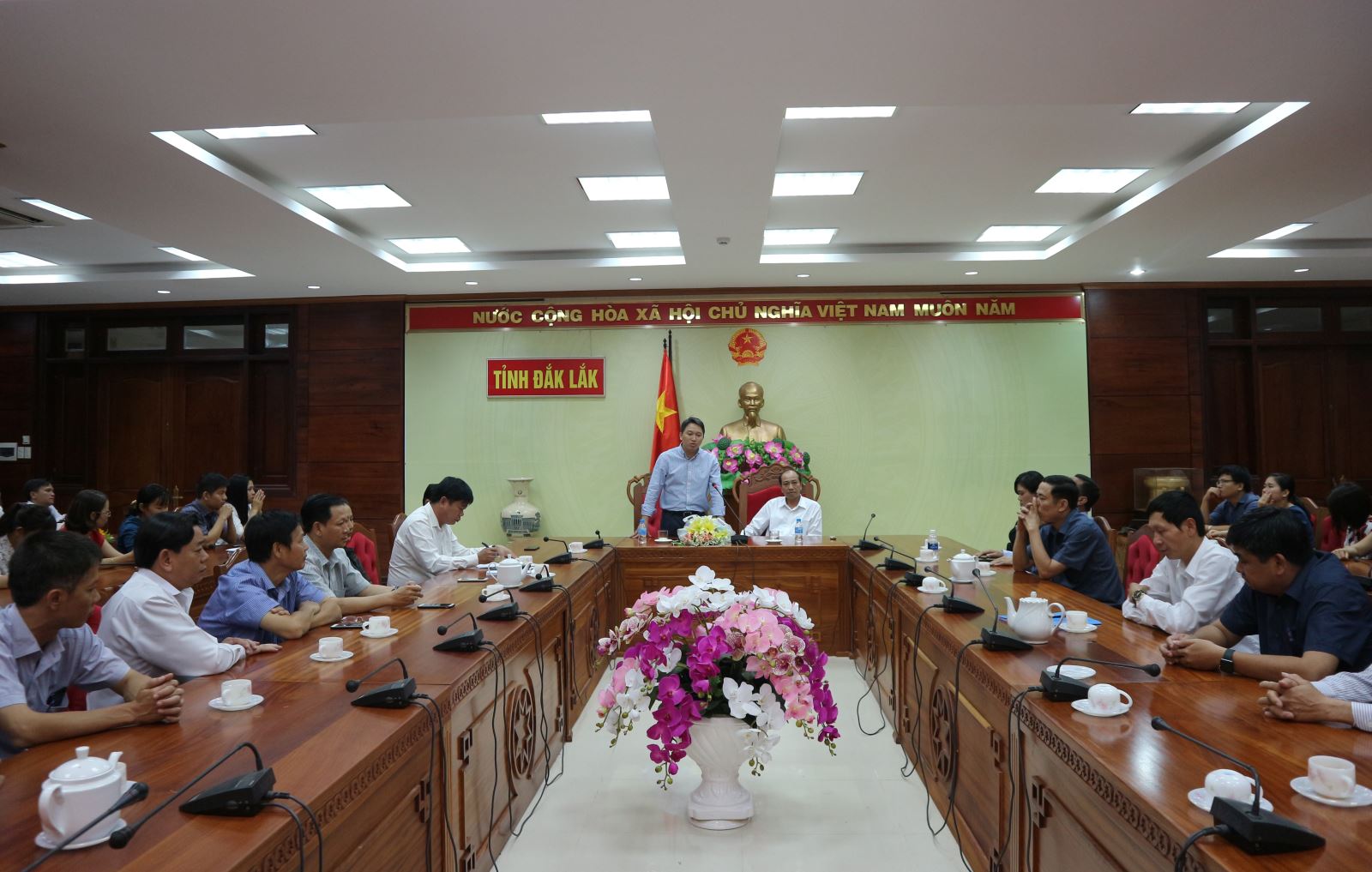 | Phó Chủ tịch UBND tỉnh H'Yim Kđoh phát biểu tại buổi gặp mặt |