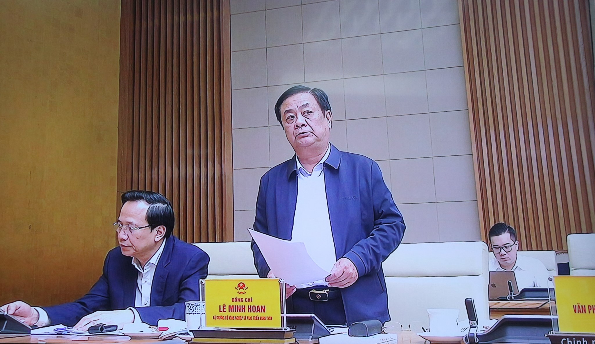 | Bộ trưởng Bộ Nông nghiệp và Phát triển nông thôn Lê Minh Hoan tham gia ý kiến tại phiên họp (Ảnh chụp từ màn hình) |