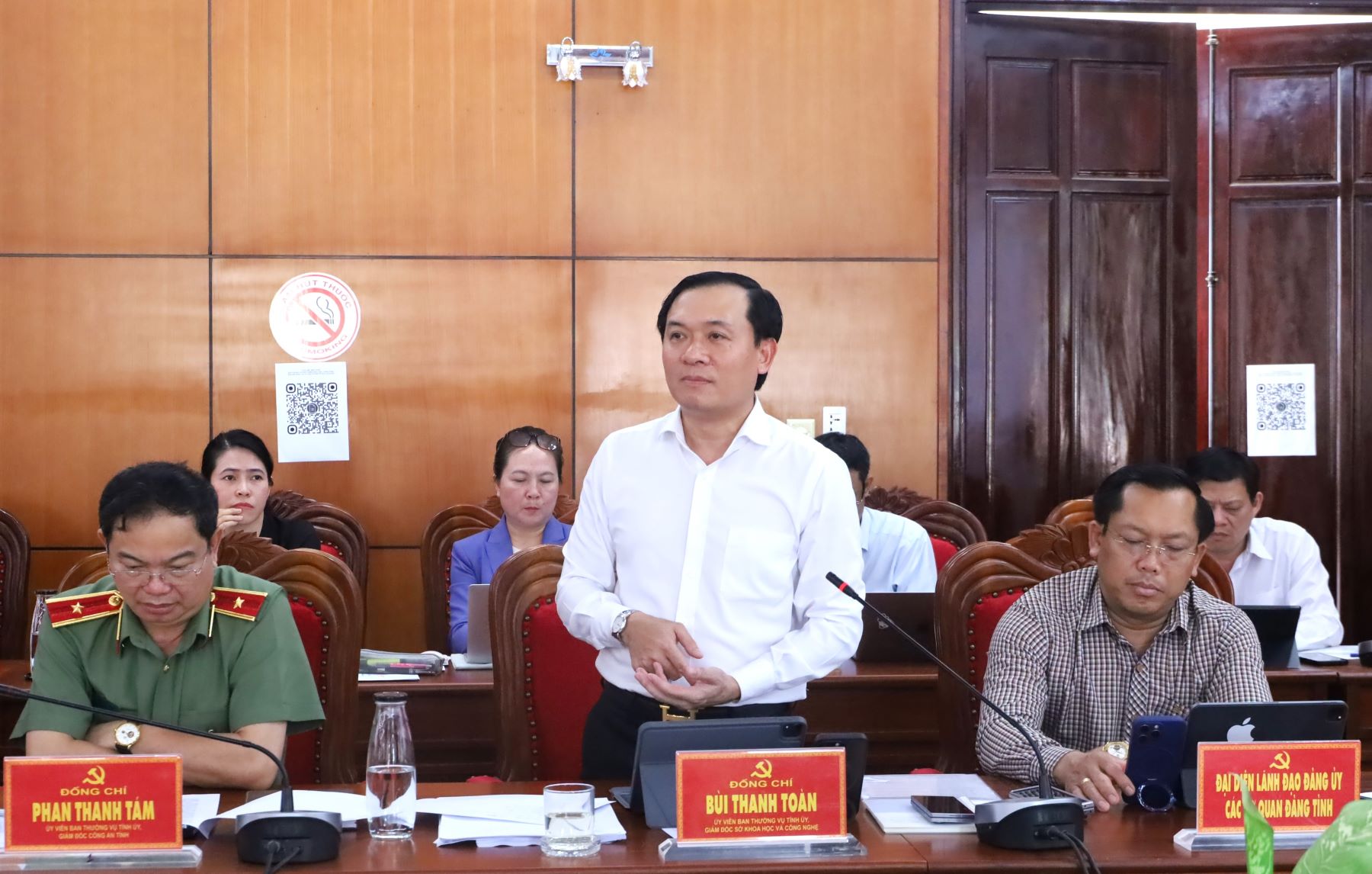 Ủy viên Ban Thường vụ Tỉnh ủy, Giám đốc Sở Khoa học và Công nghệ Bùi Thanh Toàn thông tin tại phiên họp.