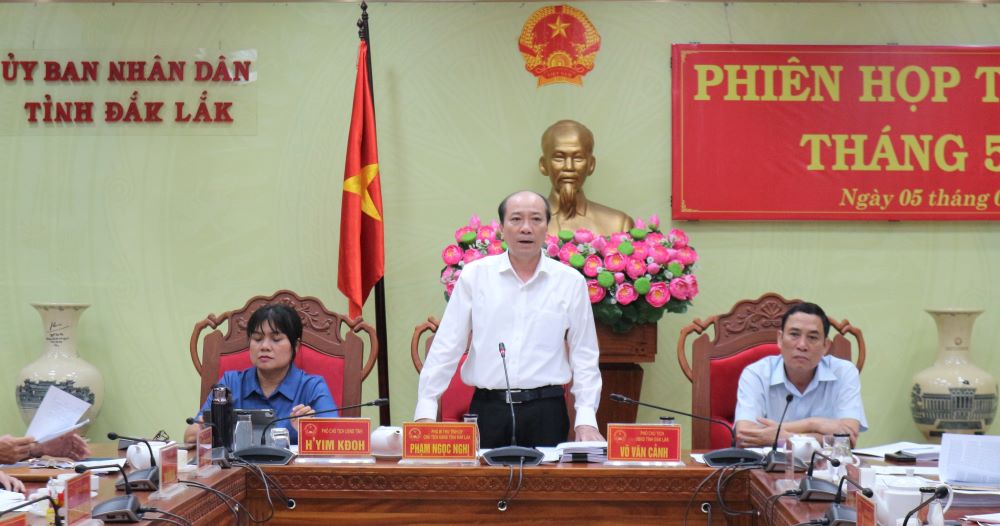 Chiều 5/6, UBND tỉnh tổ chức Phiên họp thường kỳ tháng 5/2023. Phó Bí thư Tỉnh uỷ, Chủ tịch UBND tỉnh Phạm Ngọc Nghị chủ trì; Phó Chủ tịch UBND tỉnh Võ Văn Cảnh; Phó Chủ tịch UBND tỉnh H’Yim Kđoh; lãnh đạo các sở, ban, ngành, đơn vị liên quan cùng tham dự.