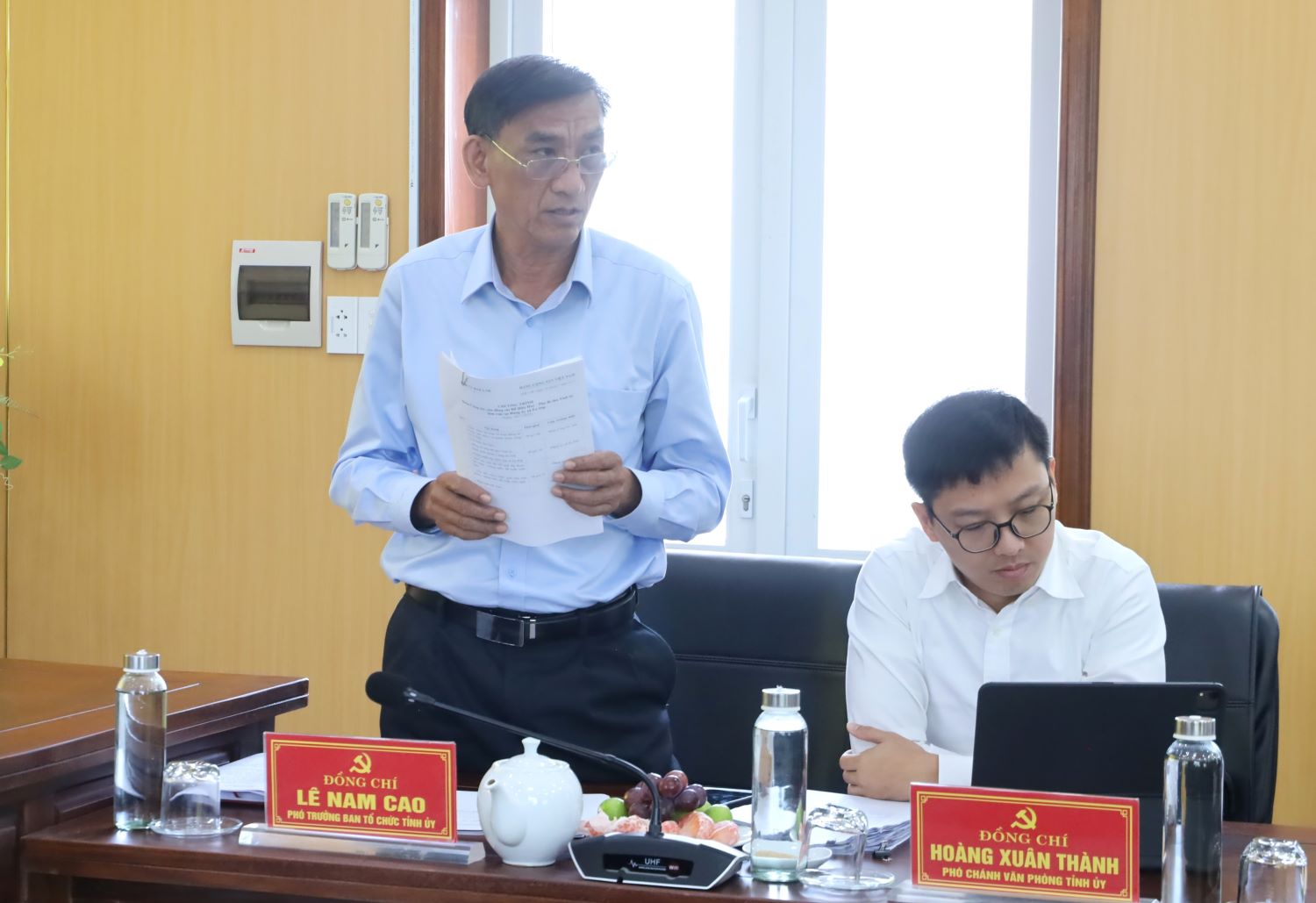 Phó Trưởng Ban Tổ chức Tỉnh ủy Lê Nam Cao phát biểu tại buổi làm việc.
