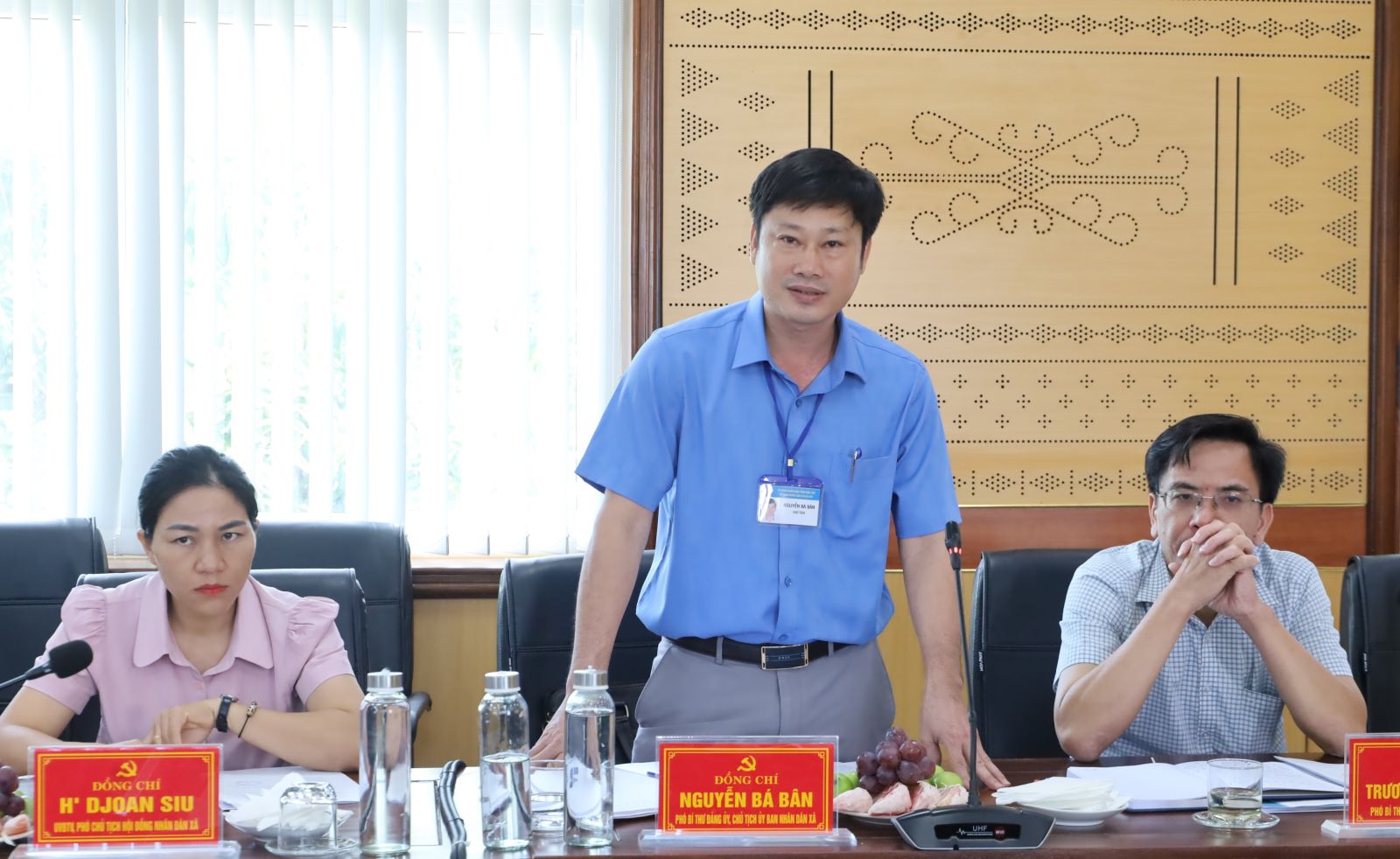 Phó Bí thư Đảng ủy, Chủ tịch UBND xã Nguyễn Bá Bân phát biểu tại buổi làm việc.