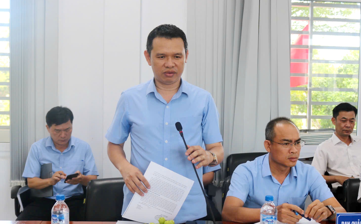 Giám đốc Ban Quản lý các dự án đầu tư xây dựng khu vực phía Đông tỉnh Đắk Lắk Đặng Khoa Đãm báo cáo tại buổi làm việc.