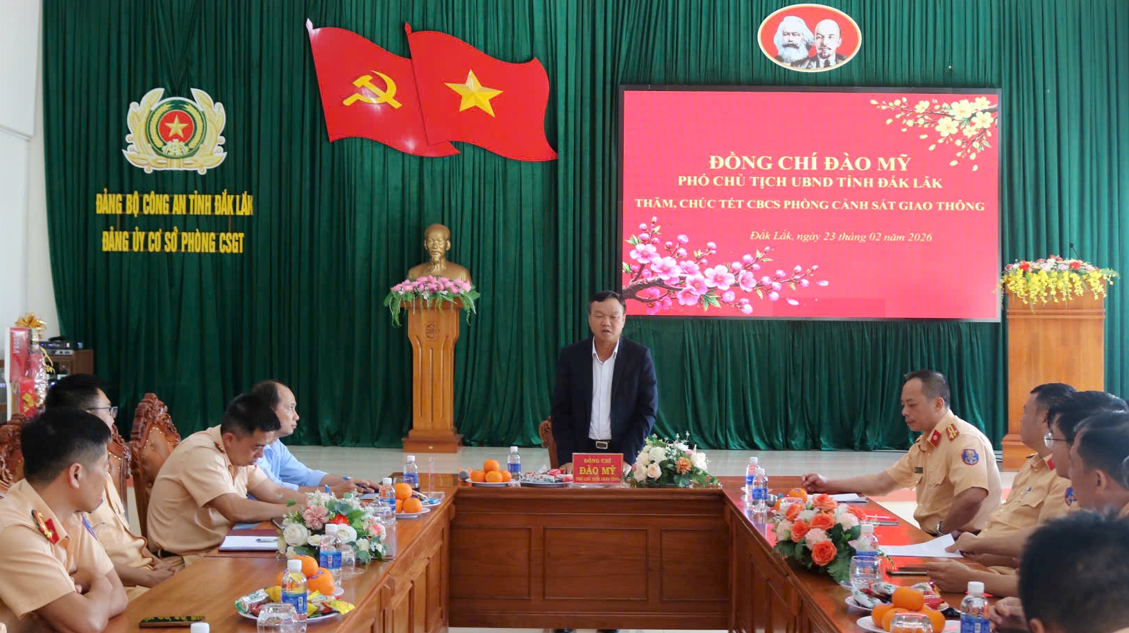 Chiều 23/2, Đoàn công tác của Tỉnh ủy, HĐND, UBND, Ủy ban MTTQ Việt Nam tỉnh và Đoàn ĐBQH tỉnh do Phó Chủ tịch UBND tỉnh Đào Mỹ làm trưởng đoàn đã đến thăm, chúc Tết cán bộ, chiến sĩ Phòng Cảnh sát giao thông và Văn phòng cơ quan cảnh sát điều tra, Công an tỉnh Đắk Lắk nhân dịp đầu Xuân Bính Ngọ 2026.