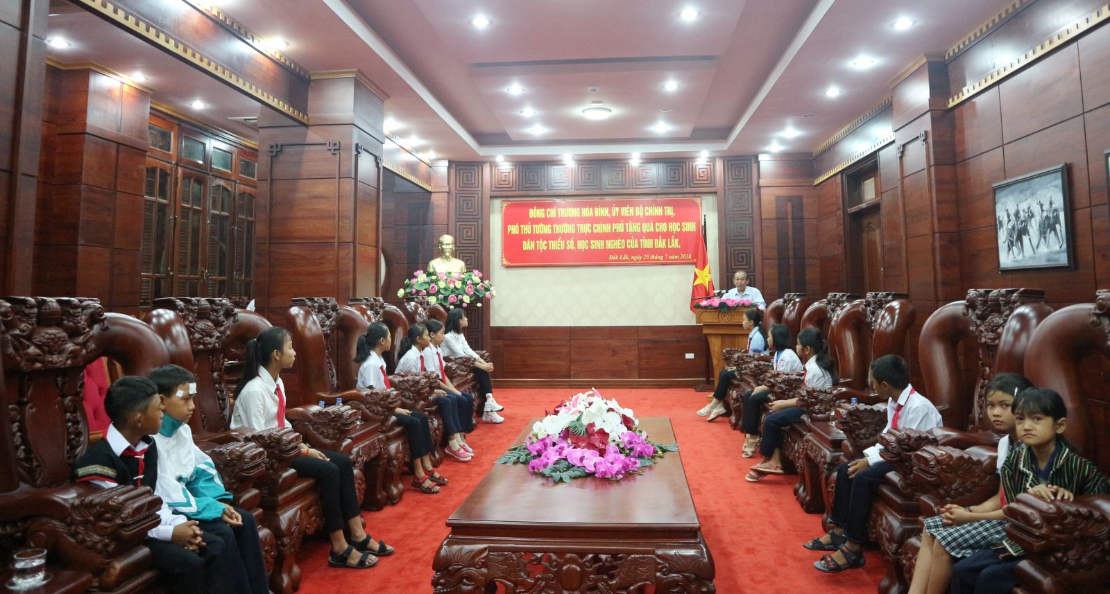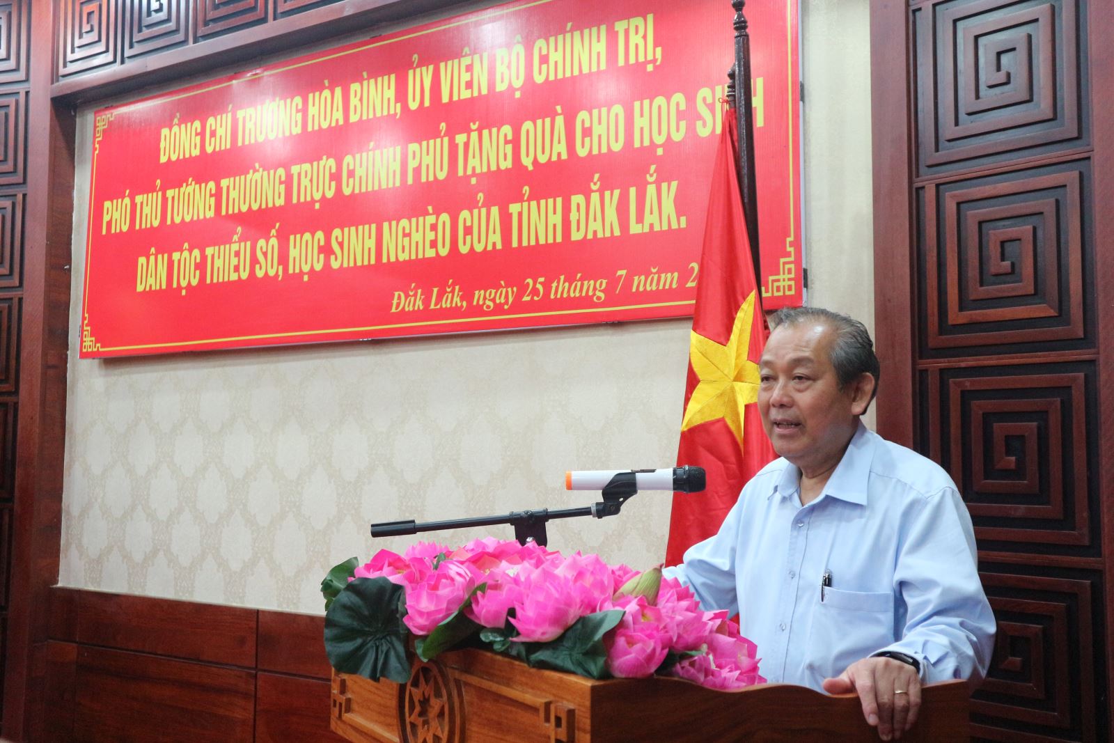 Phó Thủ tướng Thường trực Chính phủ - Trương Hòa Bình tặng quà cho học sinh dân tộc thiểu số, học sinh nghèo tỉnh Đắk Lắk