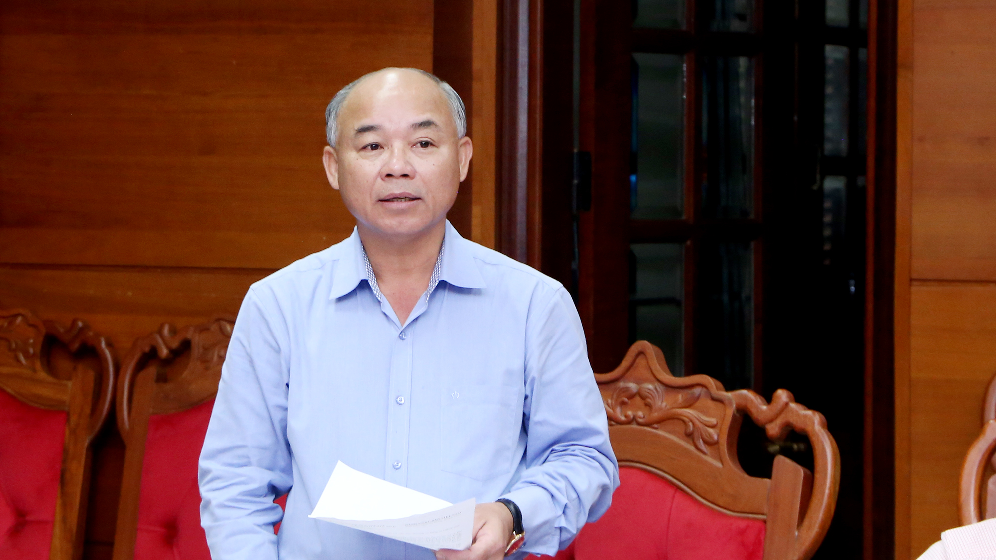 Đồng chí Nguyễn Thiên Văn - Phó Chủ tịch UBND tỉnh phát biểu tại cuộc họp.