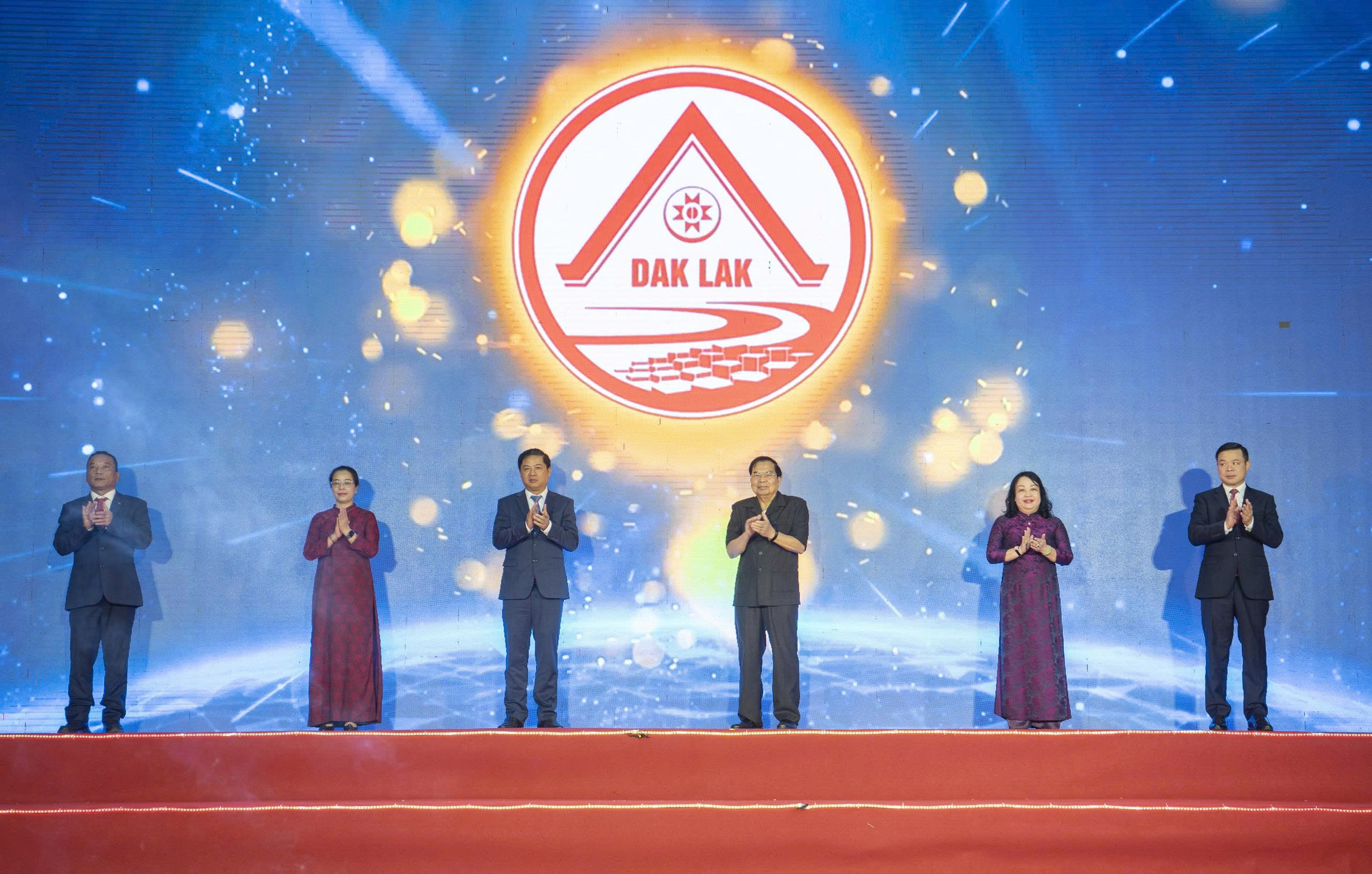 Lãnh đạo Tỉnh ủy thực hiện nghi thức công bố biểu trưng nhận diện thương hiệu mới tỉnh Đắk Lắk.