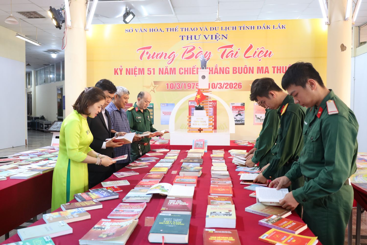 Đại biểu tìm hiểu Triển lãm trưng bày tư liệu kỷ niệm 51 năm Chiến thắng Buôn Ma Thuột (10/3/1975 – 10/3/2026).