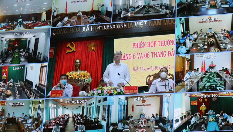 Phát biểu kết luận phiên họp, Chủ tịch UBND tỉnh Phạm Ngọc Nghị biểu dương sự cố gắng của các cấp, các ngành, các địa phương trong thời gian qua. Để hoàn thành mức cao nhất các chỉ tiêu, kế hoạch đã đề ra trong bối cảnh vừa phòng chống dịch COVID-19 vừa phát triển kinh tế, Chủ tịch UBND tỉnh đề nghị các cấp, các ngành, các địa phương tập trung thực hiện các nhiệm vụ trọng tâm sau: đẩy nhanh tiến độ thực hiện và giải ngân vốn đầu tư công; ngành nông nghiệp đẩy mạnh chuyển đổi cơ cấu cây trồng, đặc biệt là tái canh cây cà phê đã già cỗi, năng suất thấp theo hướng nâng cao chất lượng, hiệu quả; ưu tiên phát triển ngành công nghiệp chế biến sản phẩm nông nghiệp và đẩy mạnh phát triển năng lượng tái tạo; đầu tư phát triển du lịch, đưa du lịch tỉnh nhà trở thành ngành mũi nhọn; tăng cường công tác cải cách hành chính, đơn giản hóa thủ tục hành chính để thu hút nhà đầu tư tiến hành đầu tư tại tỉnh.