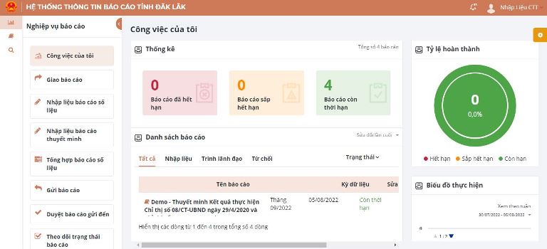 | Giao diện Hệ thống thông tin báo cáo tỉnh Đắk Lắk |