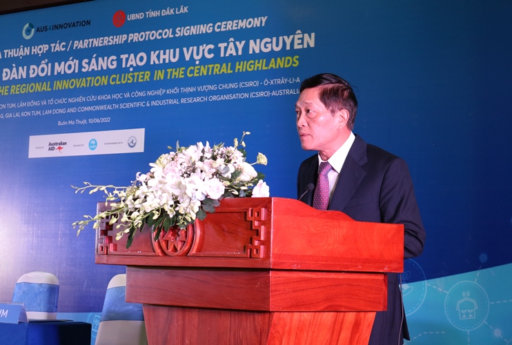 Sáng 10/6, tại UBND tỉnh Đắk Lắk, 5 tỉnh khu vực Tây Nguyên (Đắk Lắk, Đắk Nông, Gia Lai, Kom Tum, Lâm Đồng) và Tổ chức Nghiên cứu Khoa học và Công nghệ Khối thịnh vượng (CSIRO) – Australia đã ký kết Thoả thuận hợp tác thành lập Diễn đàn đổi mới sáng tạo khu vực Tây Nguyên. Tham dự có các đồng chí: Thứ trưởng Bộ Khoa học và Công nghệ Trần Văn Tùng; Phó Bí thư Tỉnh ủy Đắk Lắk Y Biêr Niê; Phó Chủ tịch Thường trực UBND tỉnh Đắk Lắk Nguyễn Tuấn Hà; Phó Đại sứ Australia Mark Tattersall; lãnh đạo 5 tỉnh của khu vực Tây Nguyên và một số doanh nghiệp.
