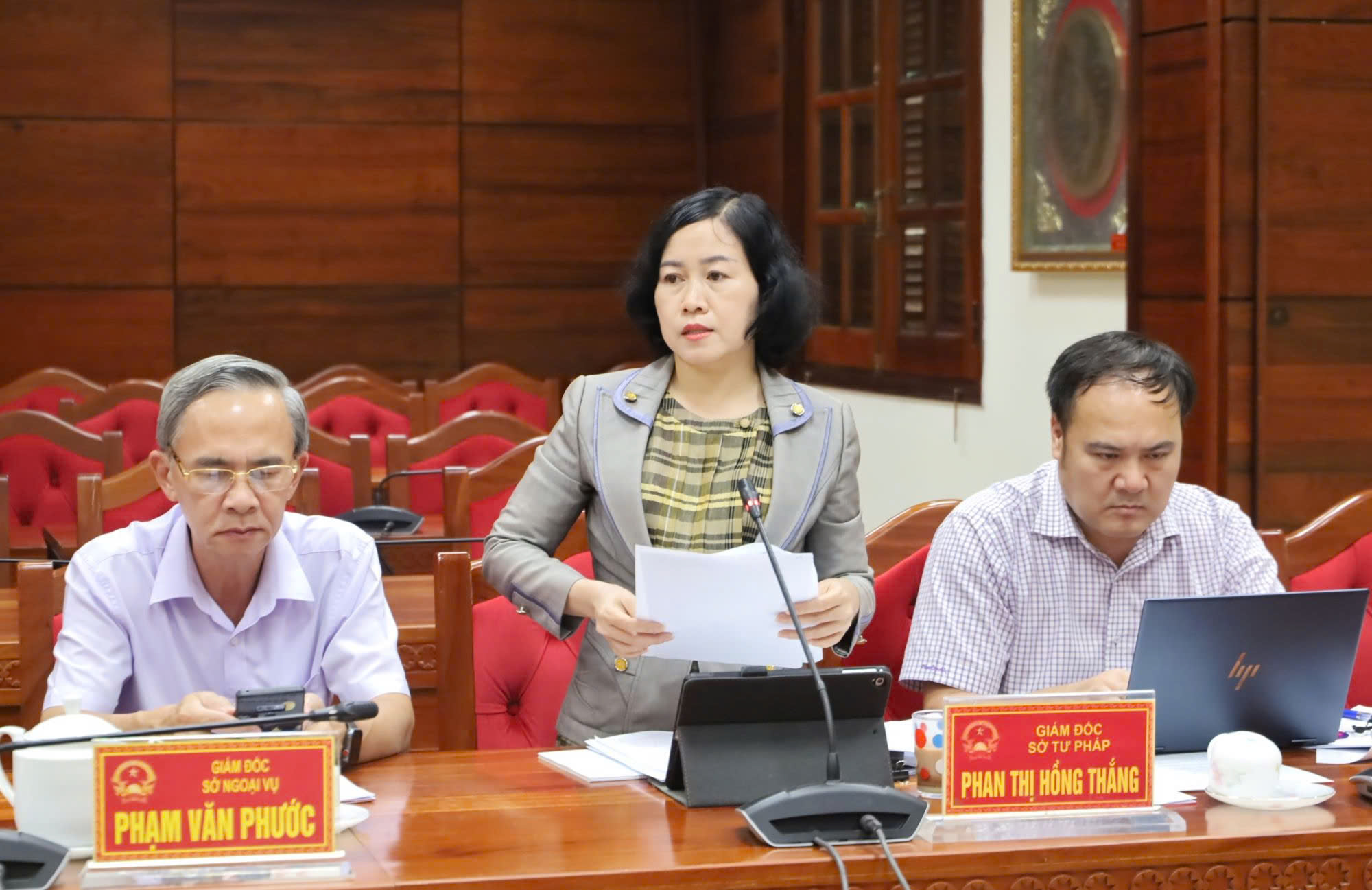 | Giám đốc Sở Tư pháp Phan Thị Hồng Thắng phát biểu thảo luận tại phiên họp. |