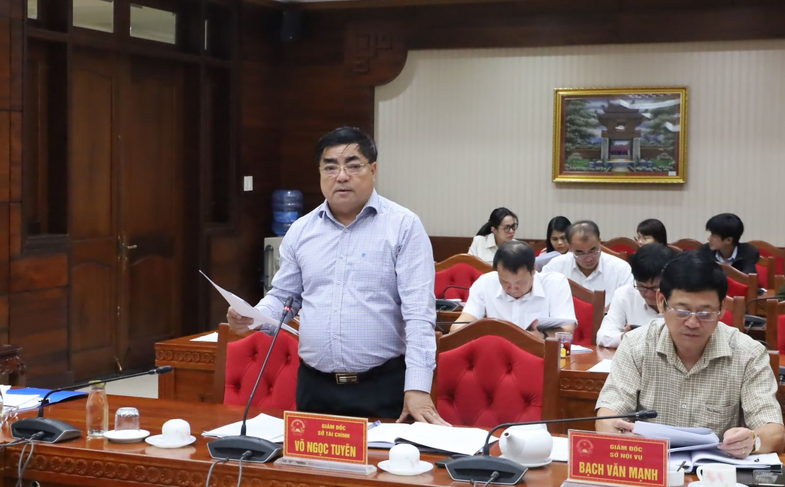 | Giám đốc Sở Tài chính Võ Ngọc Tuyên trình bày dự thảo nội dung thảo luận tại phiên họp. |