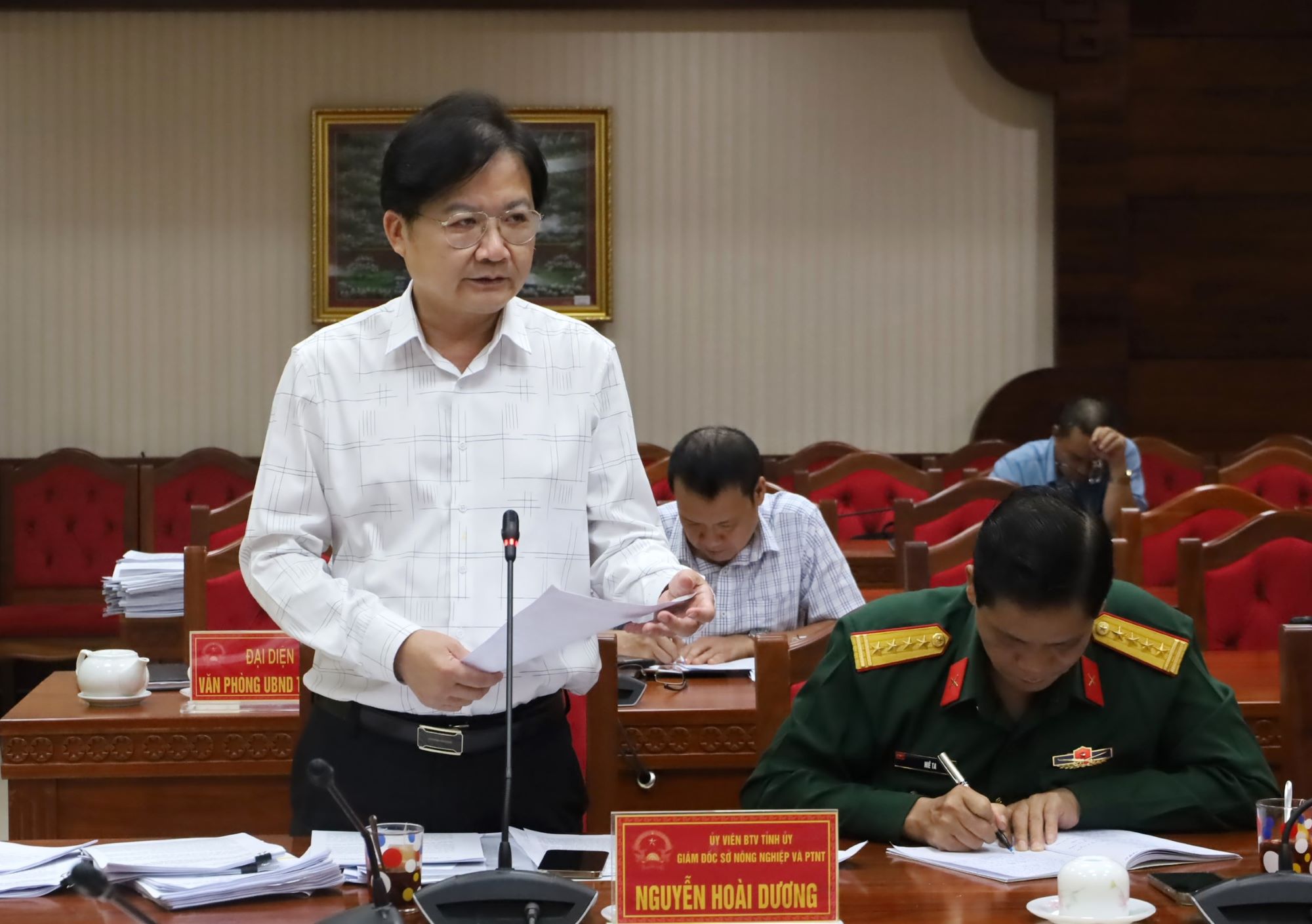 | Ủy viên Ban Thường vụ Tỉnh ủy, Giám đốc Sở Nông nghiệp và Phát triển nông thôn Nguyễn Hoài Dương phát biểu thảo luận tại phiên họp. |