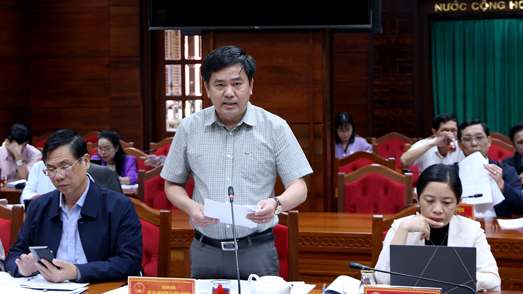 | Giám đốc Sở Tài nguyên và Môi trường Nguyễn Minh Huấn tham gia ý kiến tại phiên họp. |