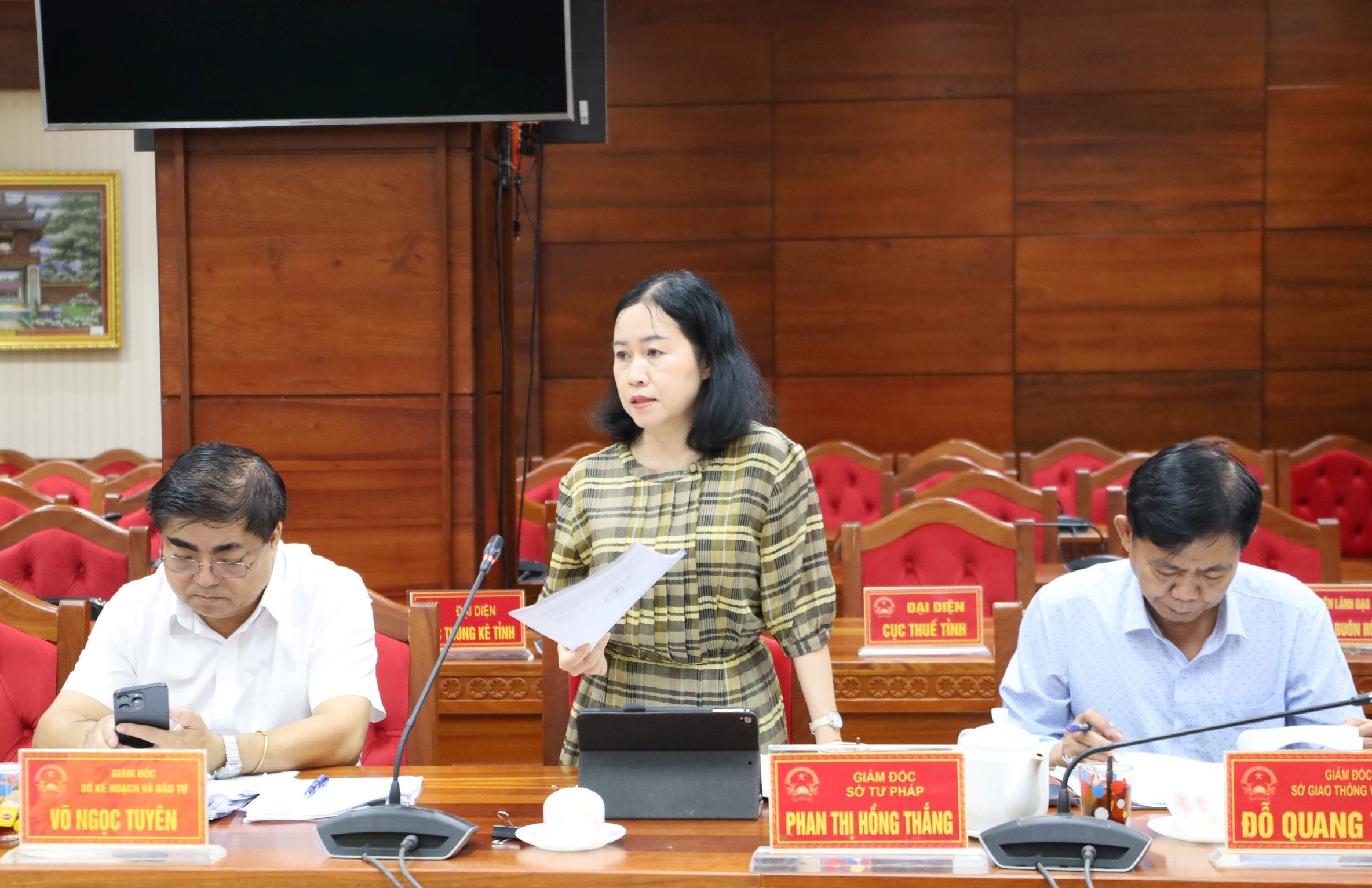 | Giám đốc Sở Tư pháp Phan Thị Hồng Thắng phát biểu thảo luận tại phiên họp |